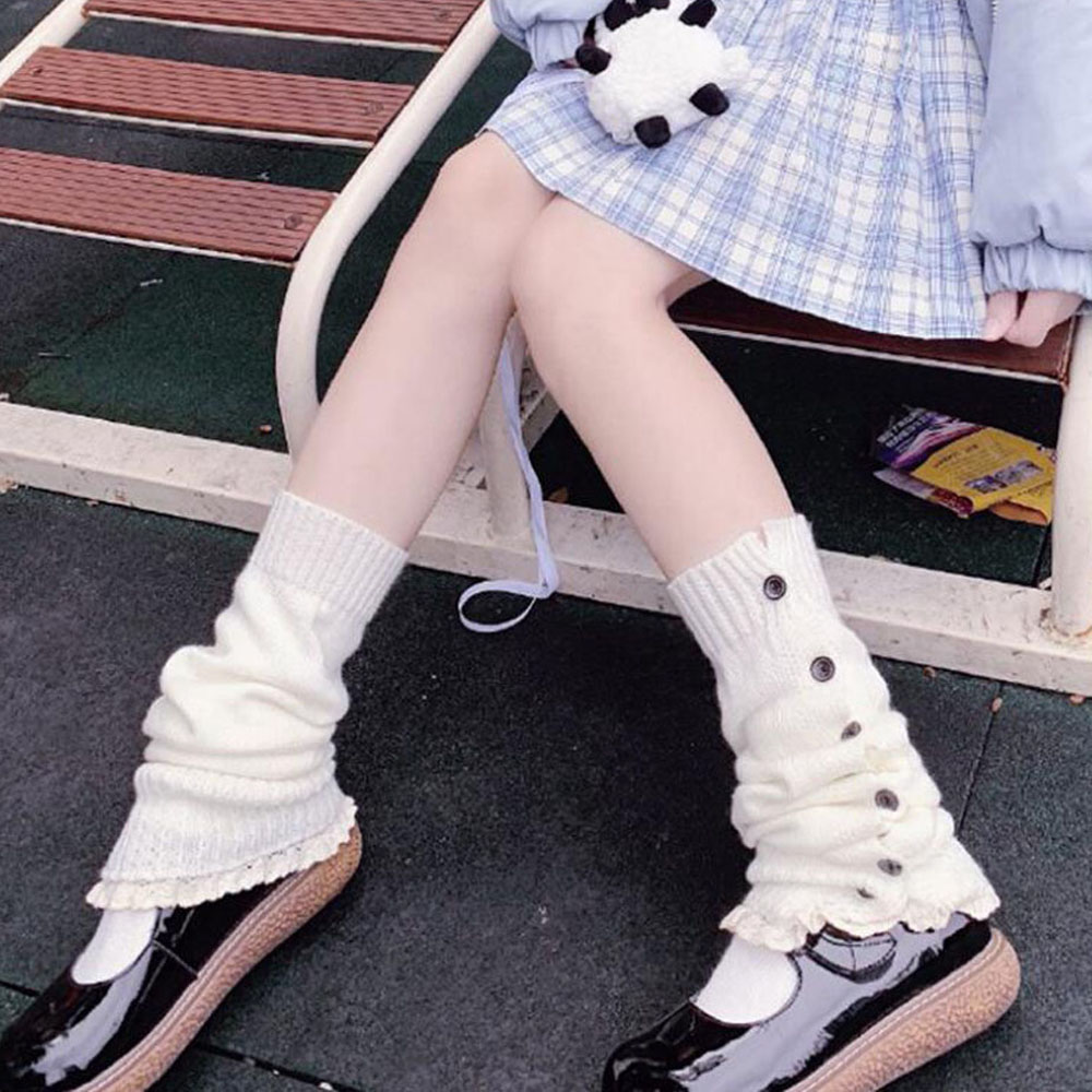 MXFASHIONE Sweet Leg Warm Socks Japanese Foot Cover Leg Warmers Women Lolita Knitted Autumn Girl Wool Ball Knee Cover