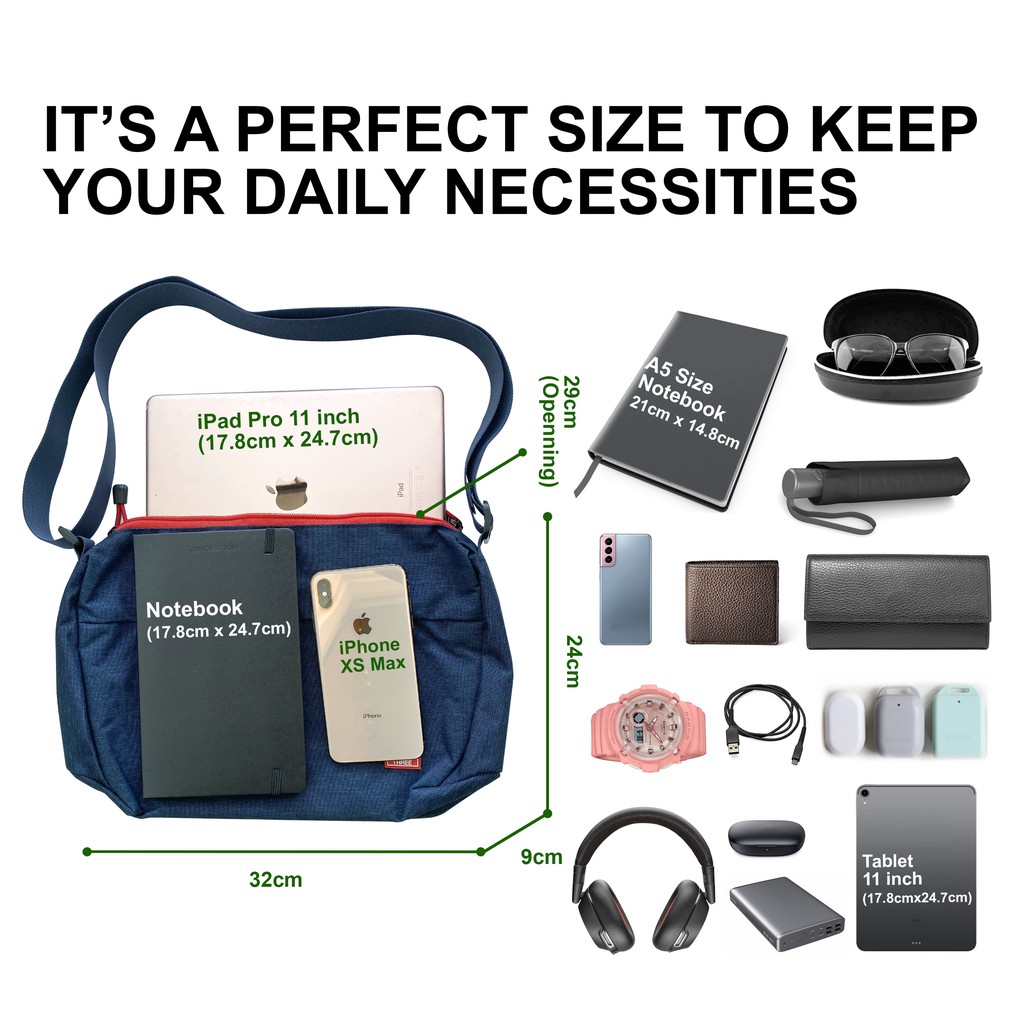 The sling bag is made of high-quality suer lightweight waterproof polyester material. It can be washed and dried naturally. The shoulder strap can be adjusted to the appropriate length according to your figure.