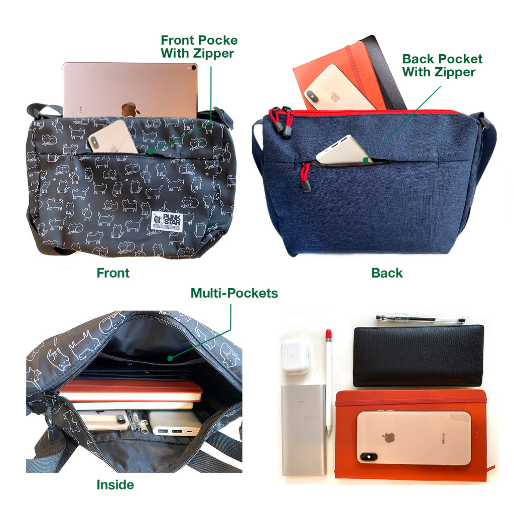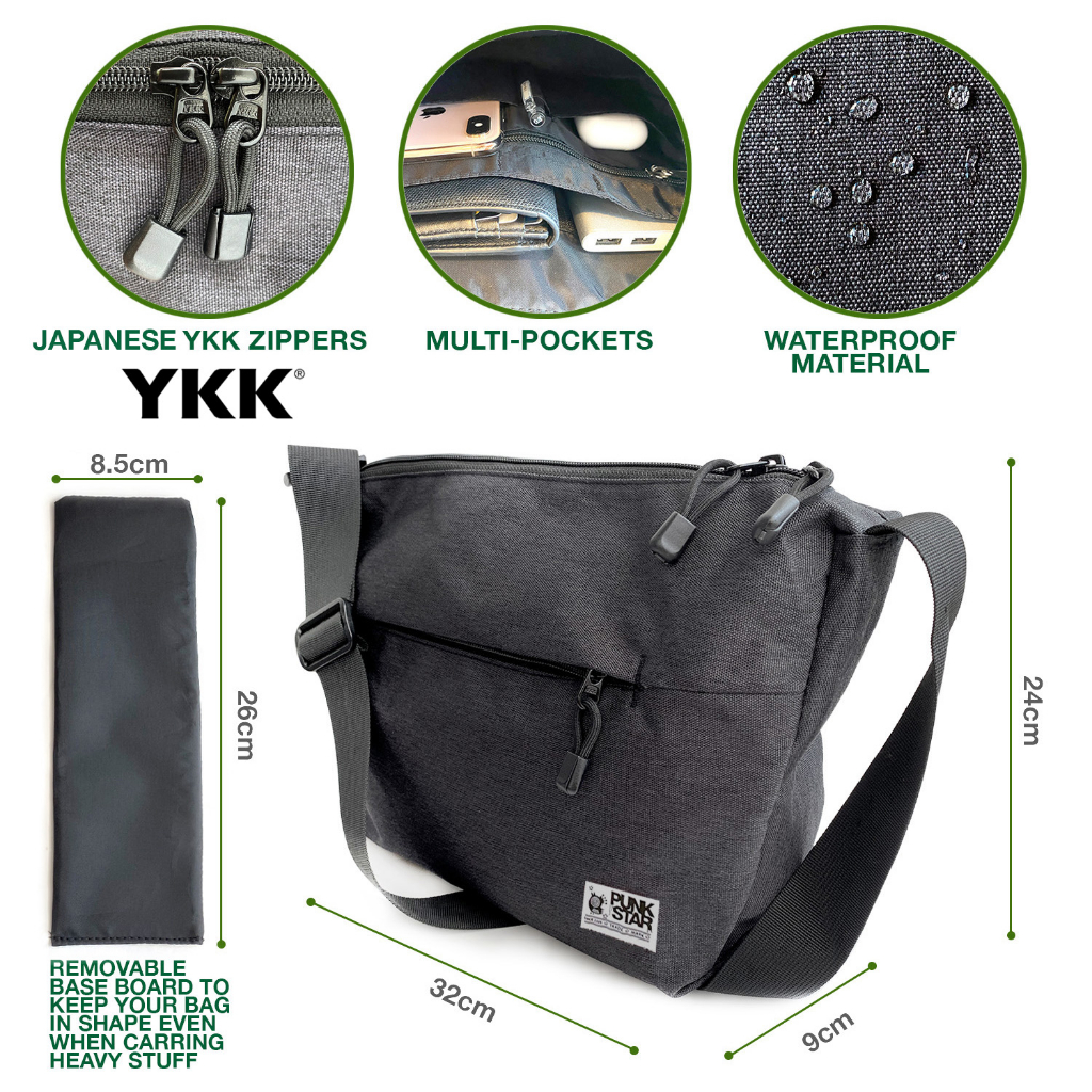 PUNKSTAR Waterproof Lightweight Multi Pockets Sling Messenger Cross Body Bag Fit 11 inch Tablet YKK Zip for Men Woman