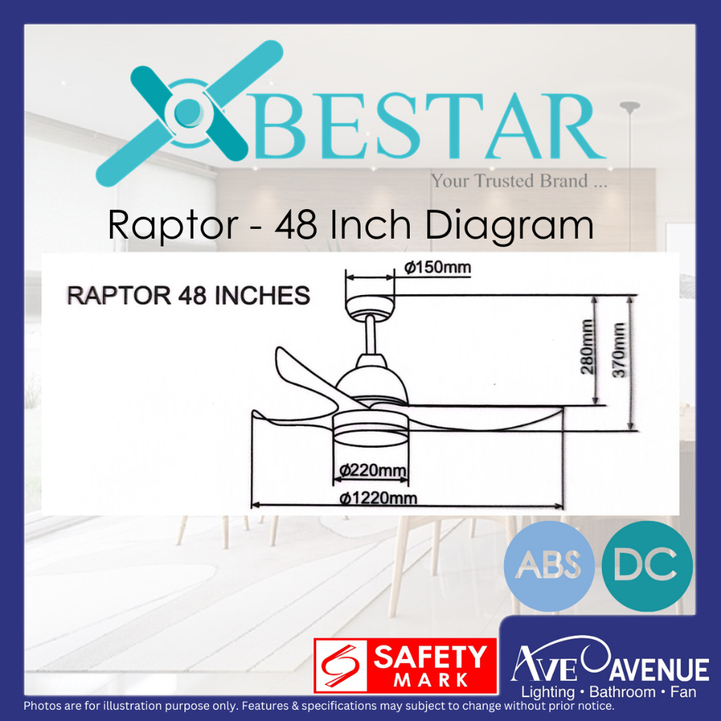 Elevate your home with our energy-efficient DC motor ceiling fan with LED light and convenient remote control, Bestar Raptor is the ultimate choice for modern homes. Don't settle for ordinary fans - Order Now and make a statement in your home. Experience the perfect blend of style, functionality, convenience, and comfort in your home!