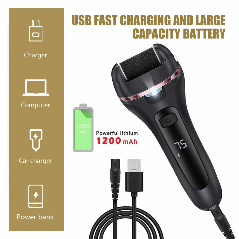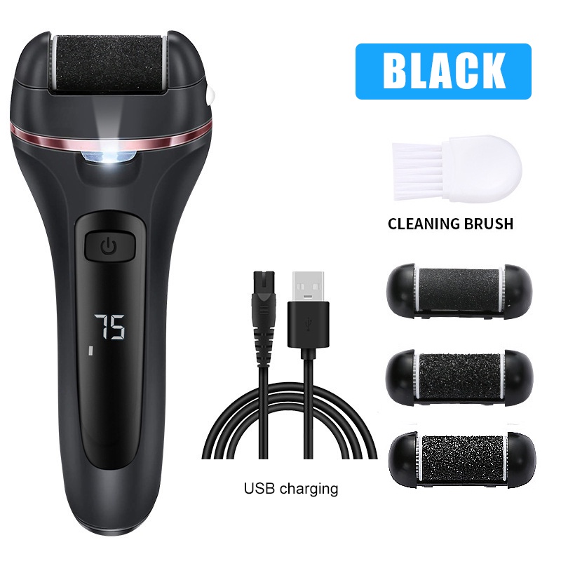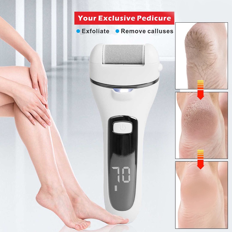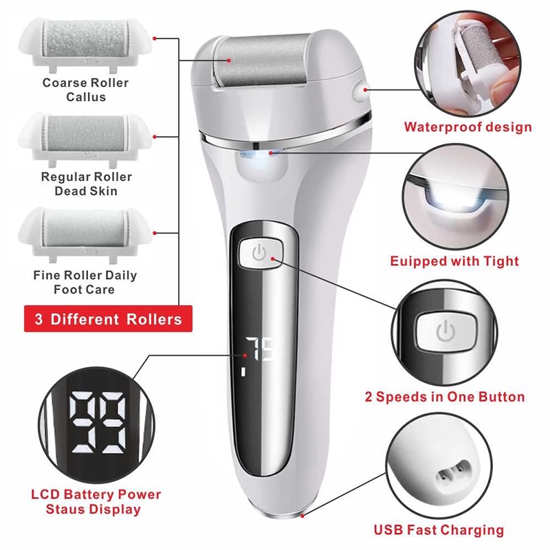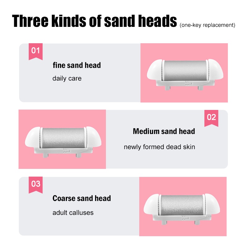 【Three Roller Heads】 Come with 3 different style roller heads : 1 thin roller for daily foot care; 1 regular roller to remove dead skin; and 1 coarse roller for annoying calluses. The roller is composed of exfoliating micro-grains to easily and quickly remove all calluses for a very soft foot effect in no time