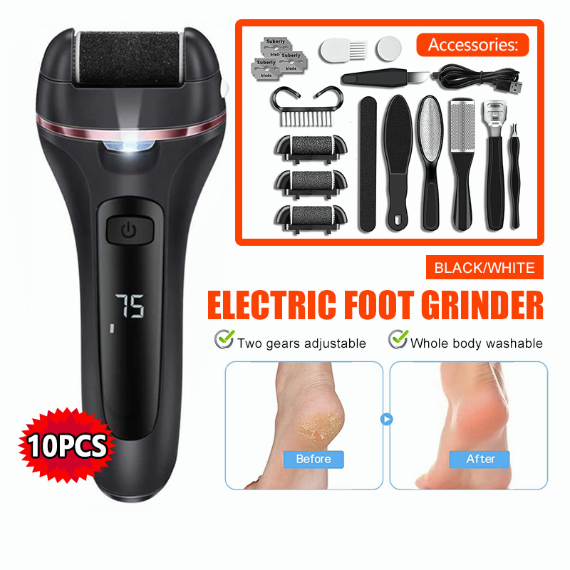 10pcs Electric Callus Remover, Foot Grinder Rechargeable Foot File Hard Skin Remover Pedicure Tools for Feet Electronic Callus Shaver Portable Waterproof Pedicure kit for Cracked Heels and Dead Skin Foot Care Foot Scrubber