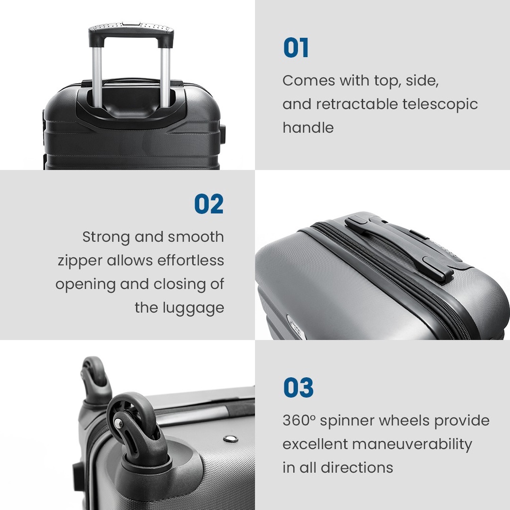 • Strong and smooth zipper allows effortless opening and closing of the luggage