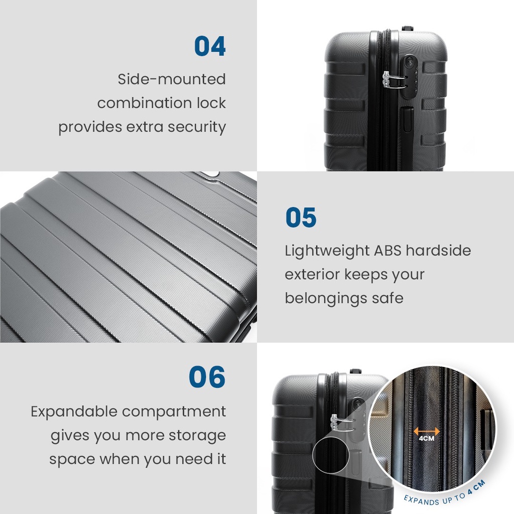 • Lightweight ABS hardside exterior keeps your belongings safe