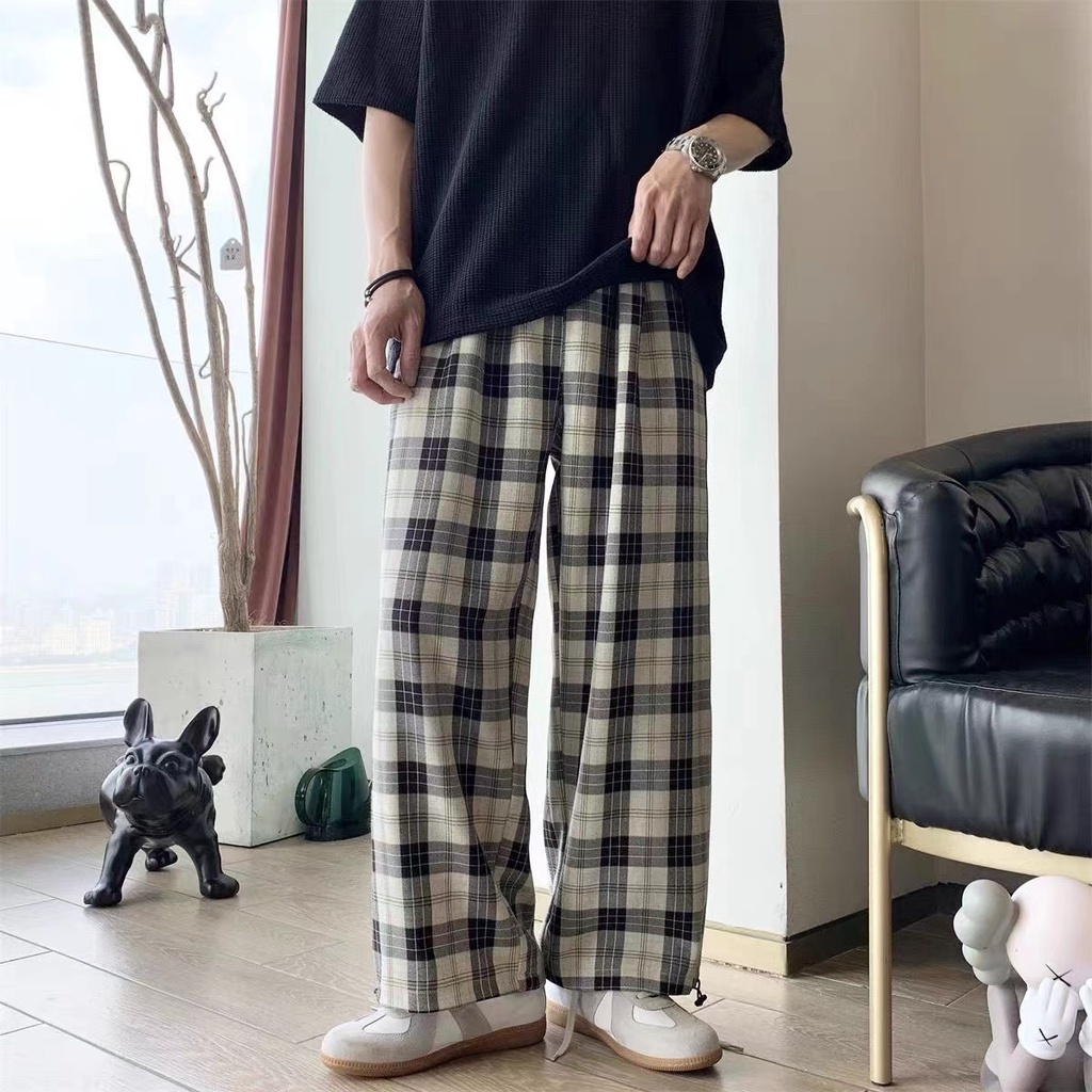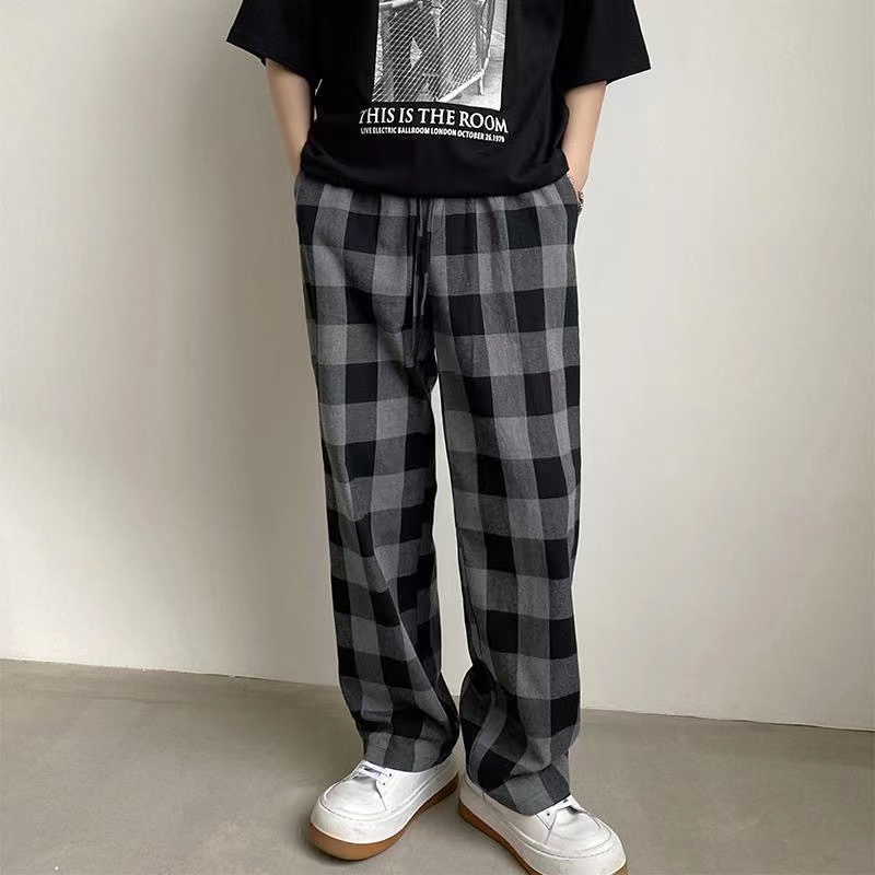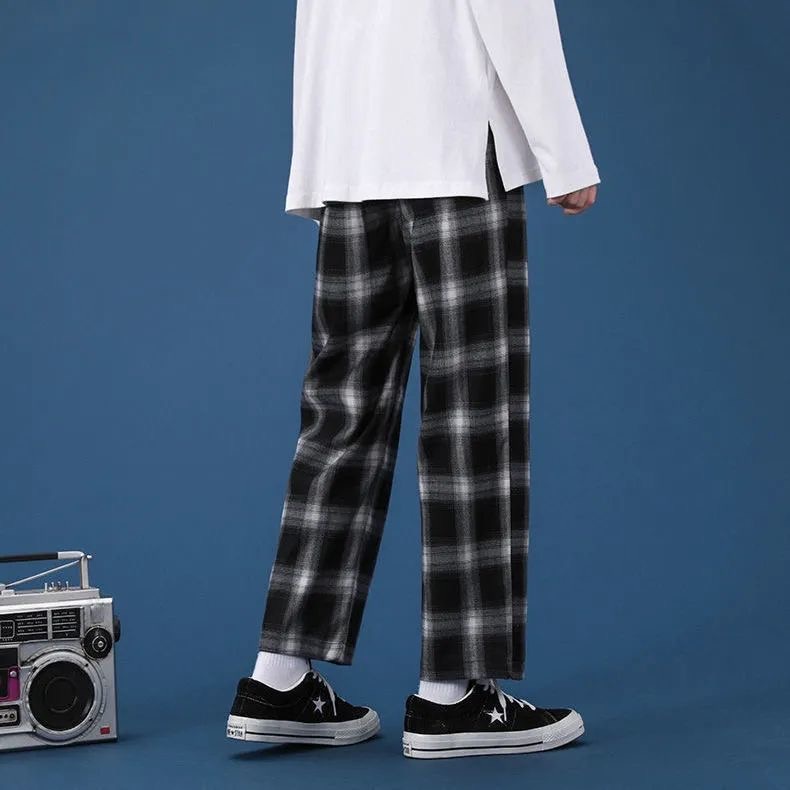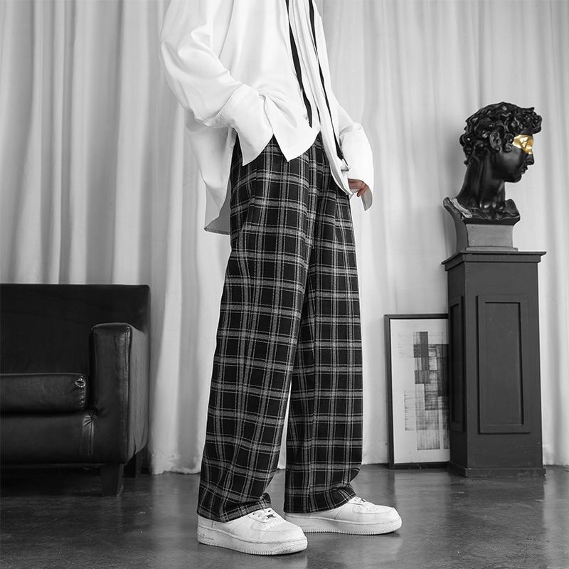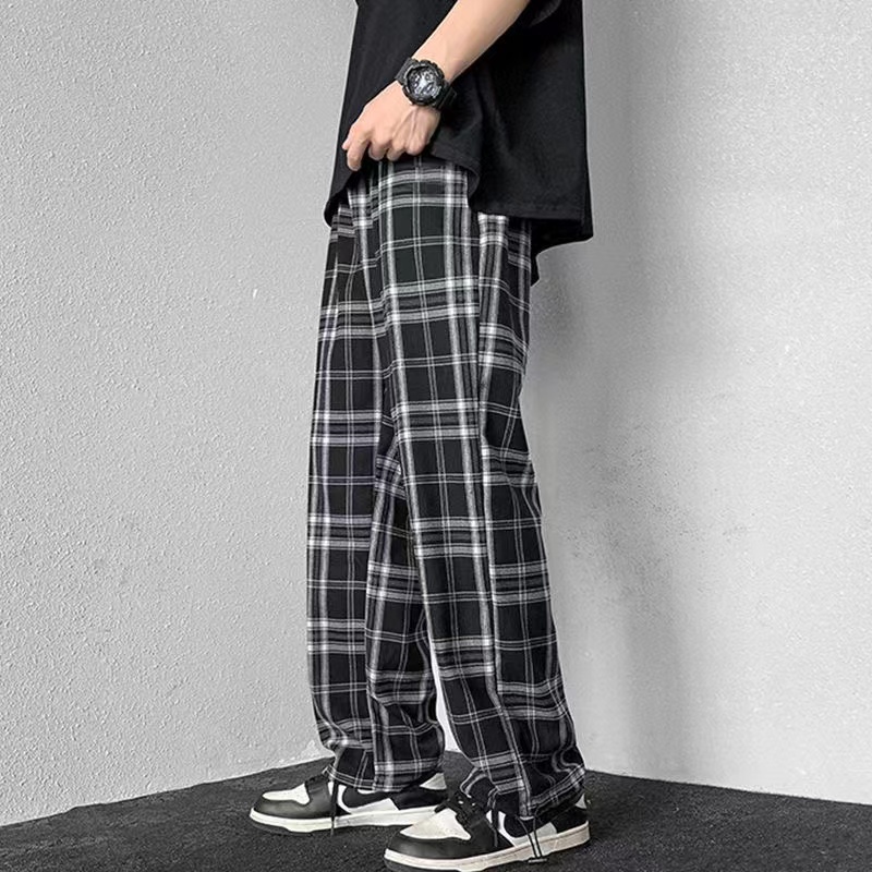 Black And White Plaid Wide Leg Pants Straight Trousers Korean Version Of The Trend Casual