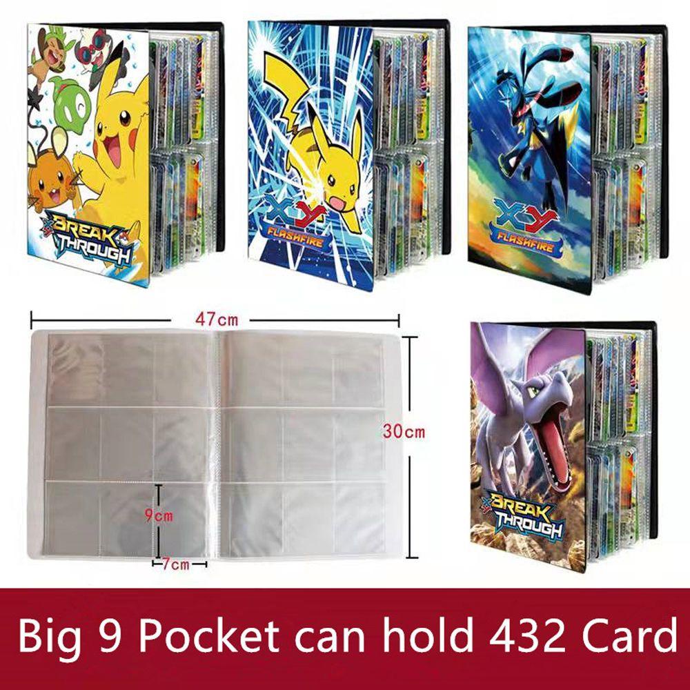 AHOUR1 Pokemon Cards Album 432 pcs Models Kids Toy Game Card Pokemon Map Binder Pikachu List Toys 9 Pocket Cartoon Anime Folder List Game Card Holder Binder