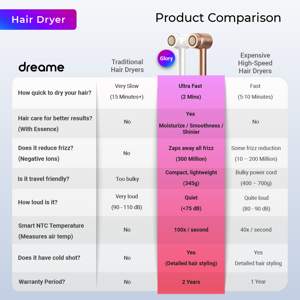 [NEW LAUNCH] Dreame Hair Glory Hair Dryer | High Speed 2 Mins Fast Drying | 300 Million Negative Ions | 2 Years Warranty