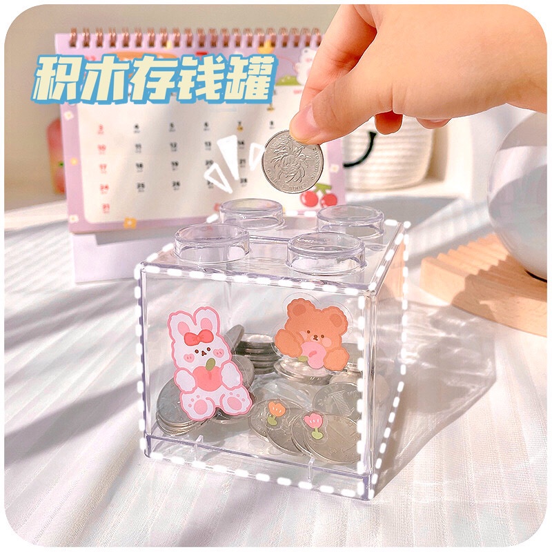 Large Capacity Organizer Storage Box Transparent Piggy Bank Building Blocks Coin Bank Ins Style