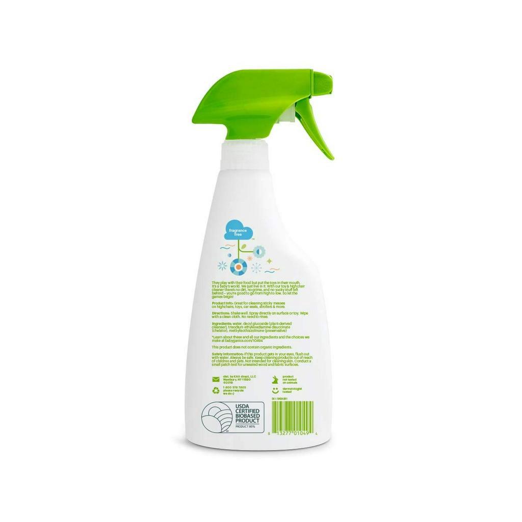 Great for cleaning sticky messes on highchairs, toys, car seats, strollers & more. Shake well. Spray directly on surface or toy. Wipe with a clean cloth. No need to rinse.