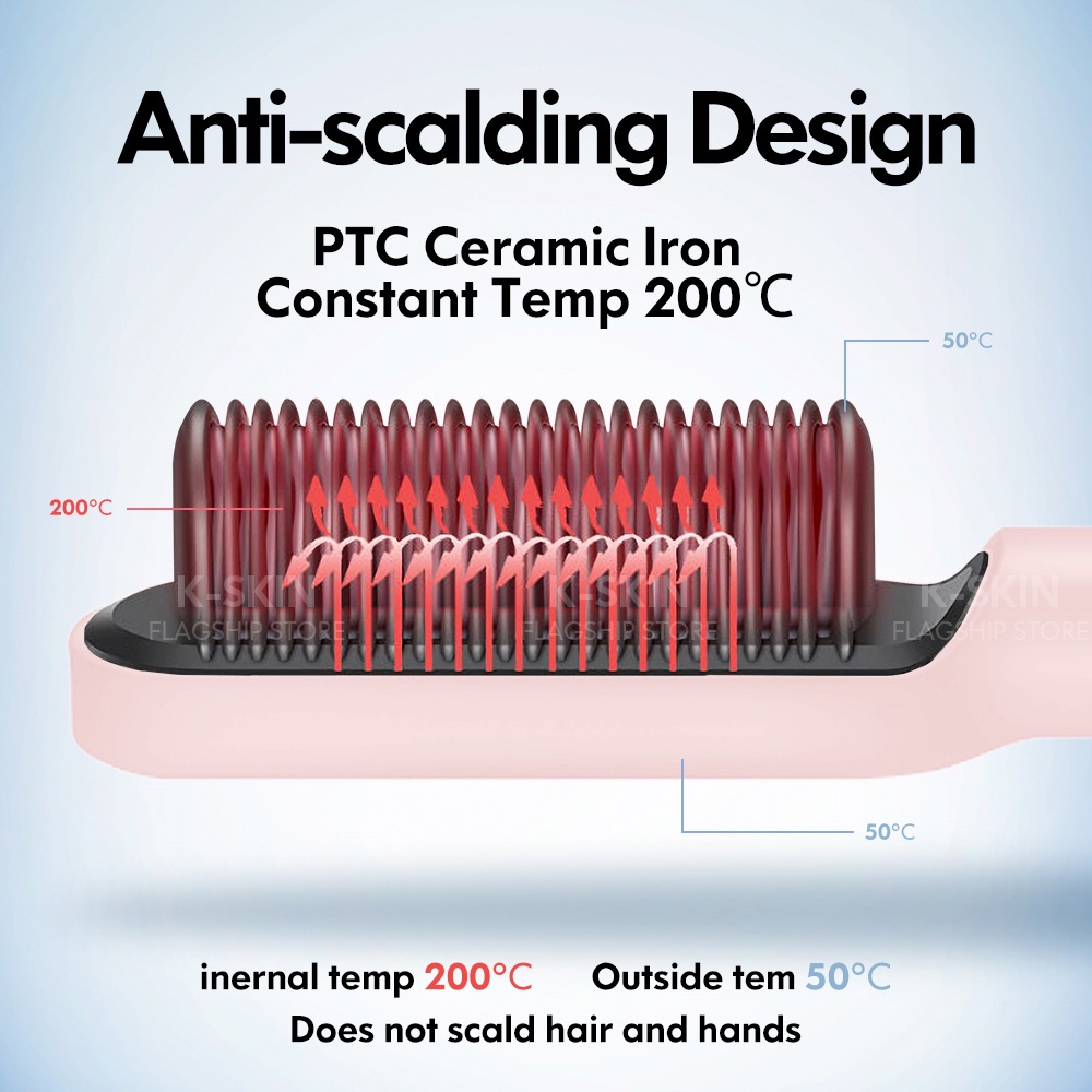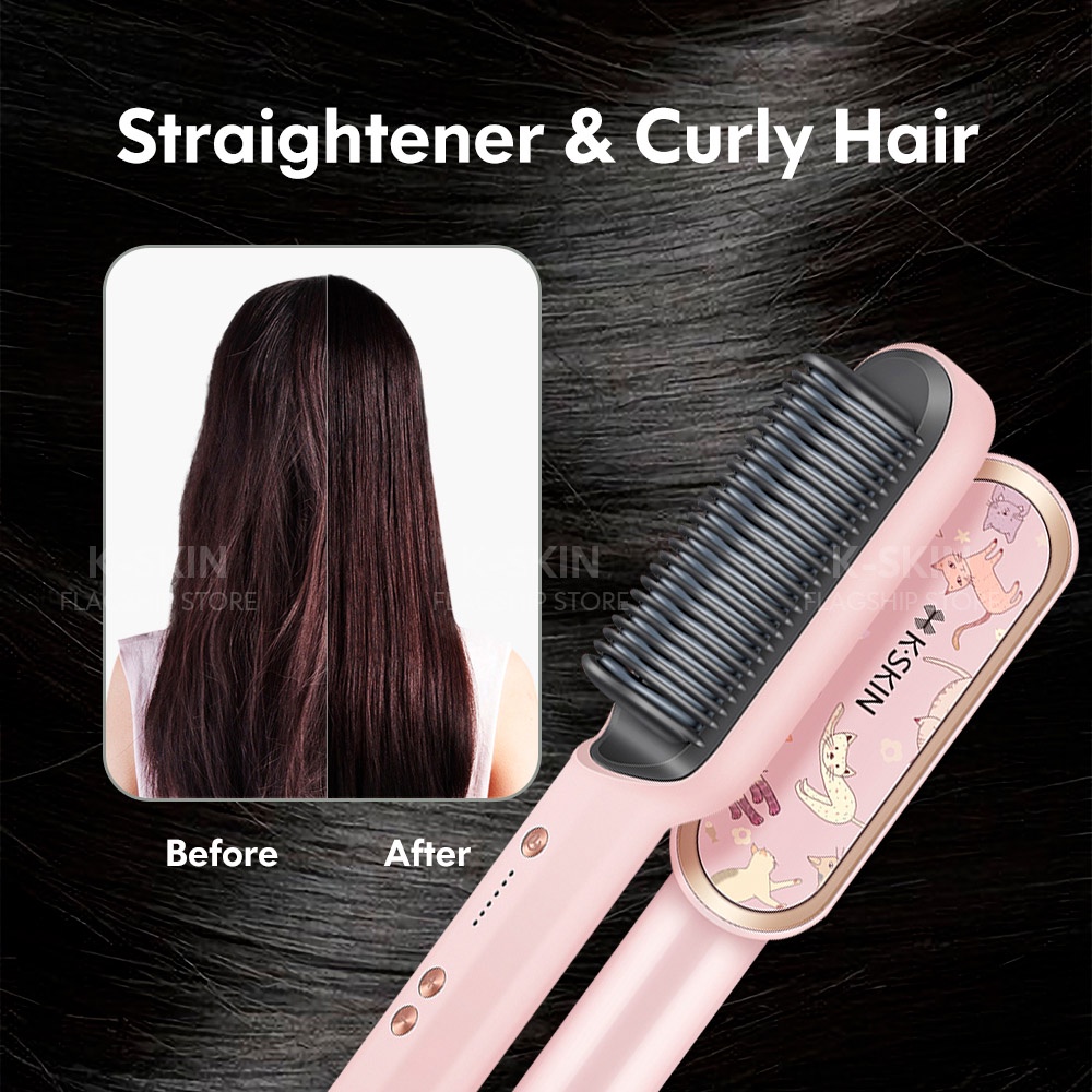 K.SKIN Hair Straightener Comb Hair Iron Straightener Ceramic Hair Curler Negative Ion Hair Brush Hair Styling KD380 金稻直发梳