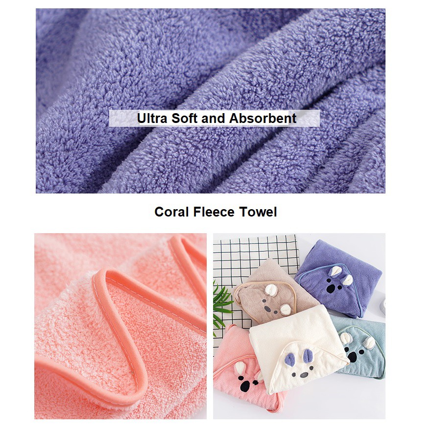 [SG Stock] Baby Hooded Coral Fleece Bath Towel Newborn Bath Towel Kids Hooded Shower Towel