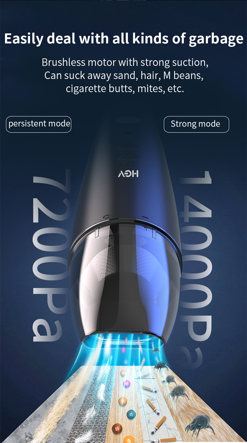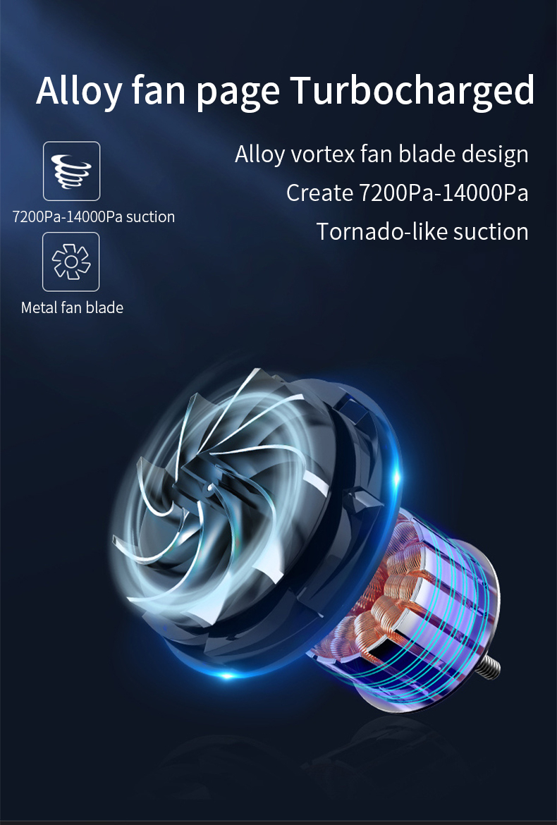 Super suction power of 14000pa, the suction power of the vacuum cleaner is more than 10000pa above the market