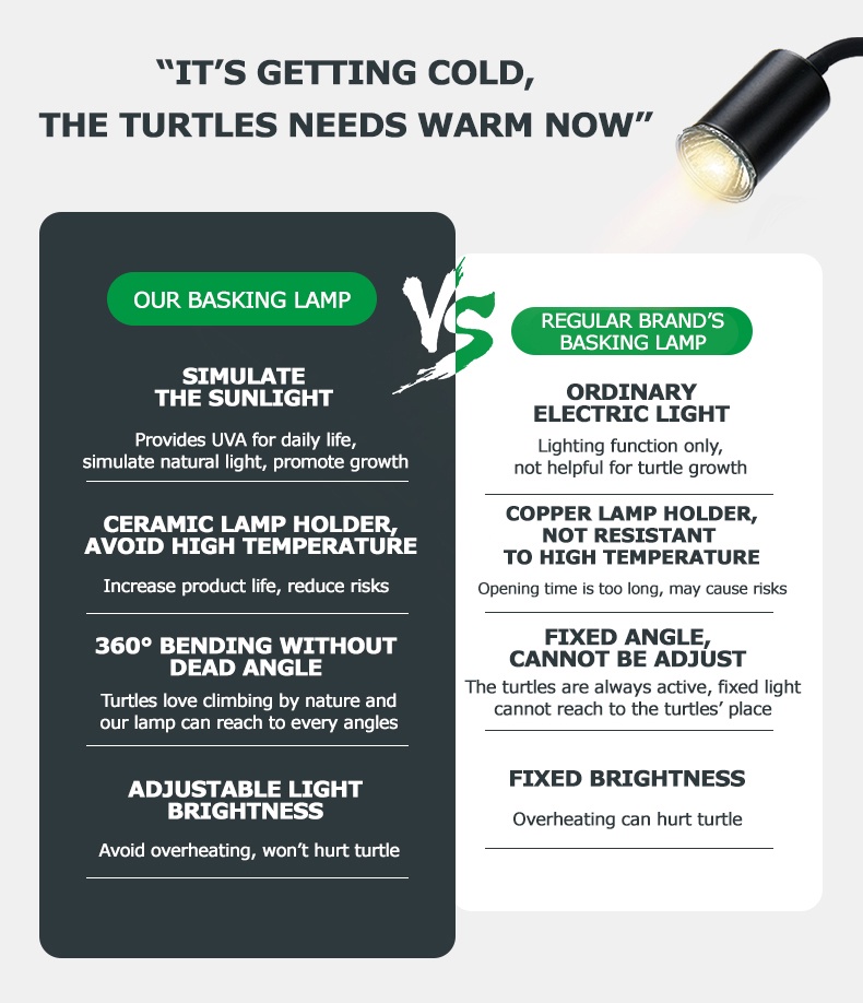 This lamp should only be used as a basking lamp for climbing pets, turning on for 2-3 hours a day is recommended. Prohibit long hours used as common lighting equipment.