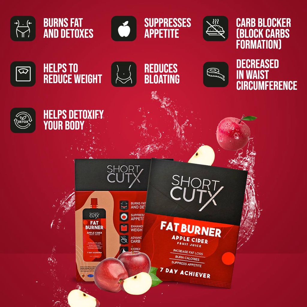 Shortcutx Fat Burner Apple Cider Fruit Juice is made from best quality Himalayan apples. It contains natural and healthy vitamins, minerals, antioxidants and enzymes, making it a perfect supplement that helps boost your overall health and well-being.