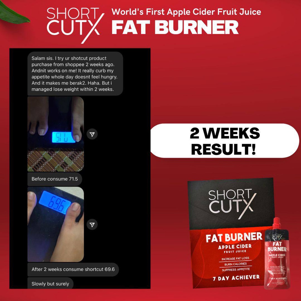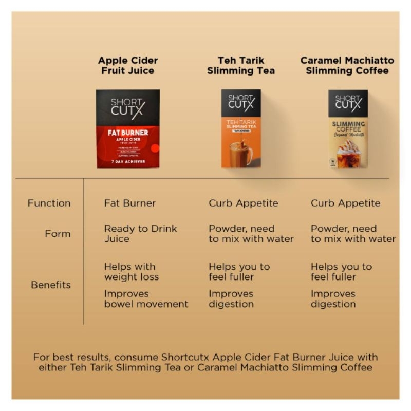 [FRESH STOCK] Shortcutx Apple Cider Vinegar Weight Loss Fat Burner Fruit Juice Slimming Tea Teh Tarik (Ready To Drink)