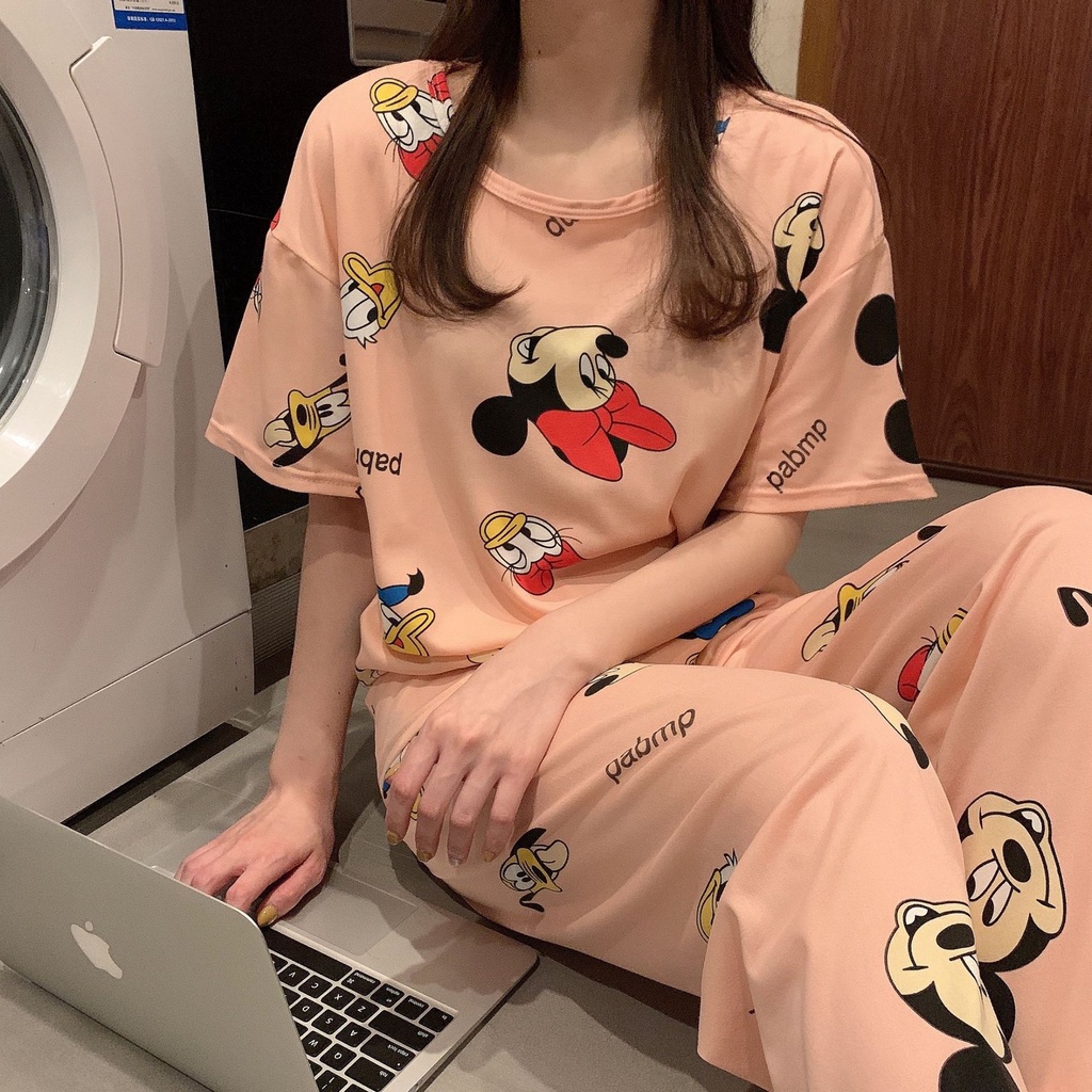 SG Ready stock Cartoon Pyjamas set (material polyester) sleepwear pajamas t-shirts shorts sleeve long pants