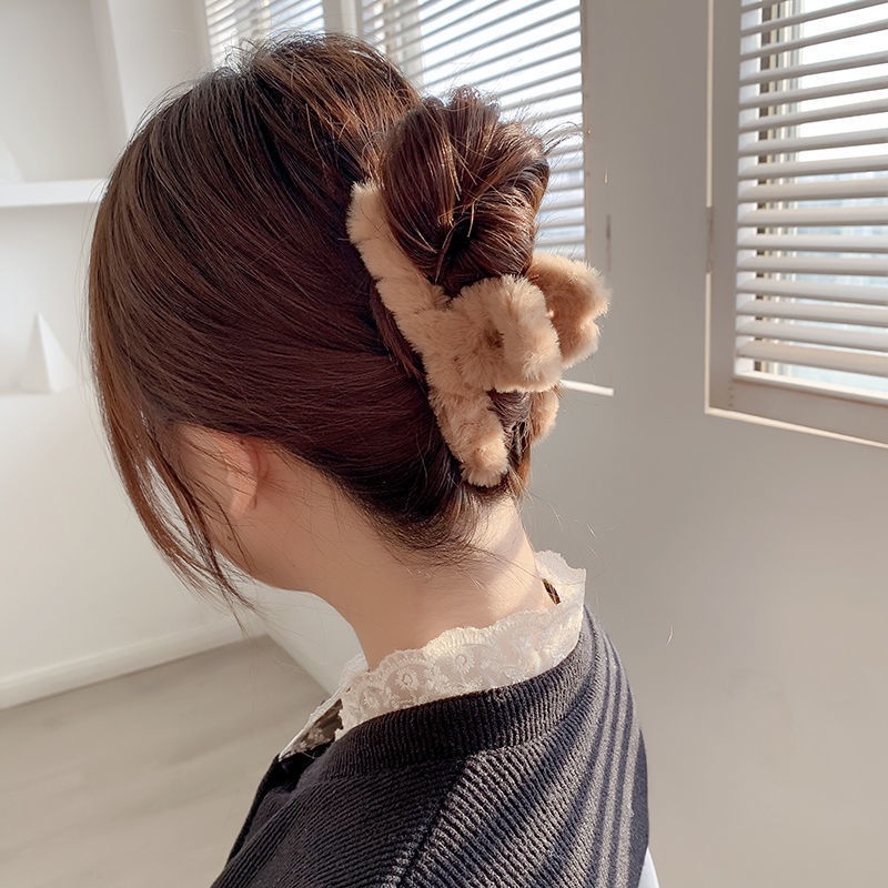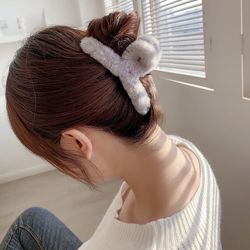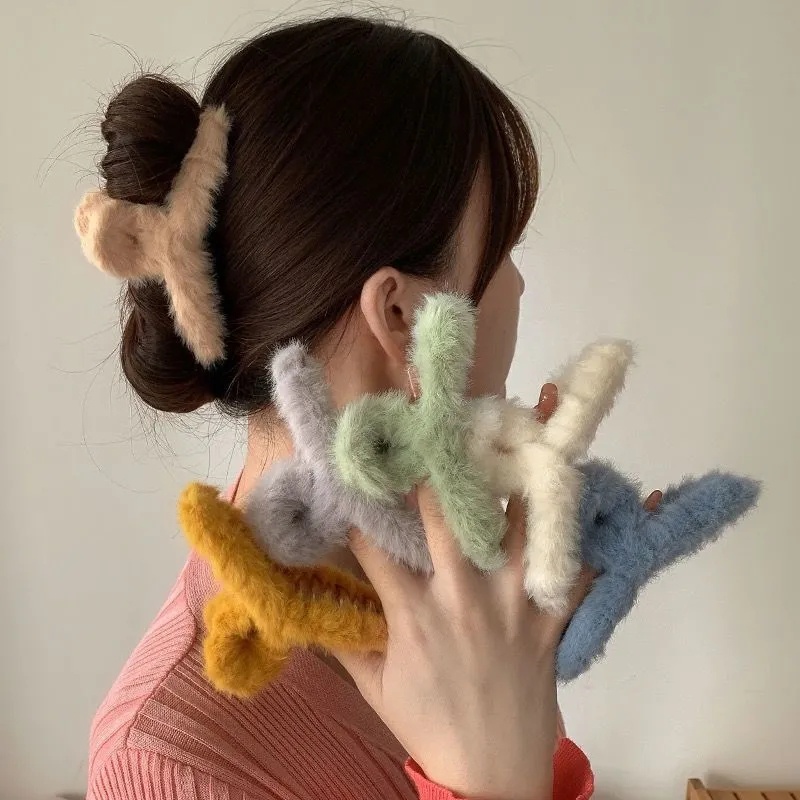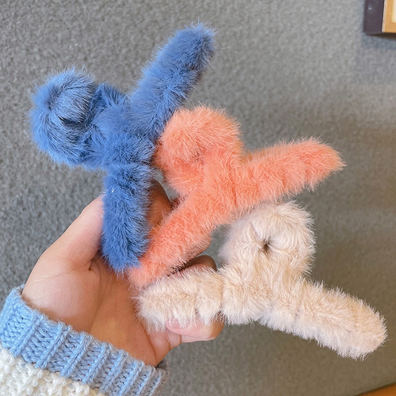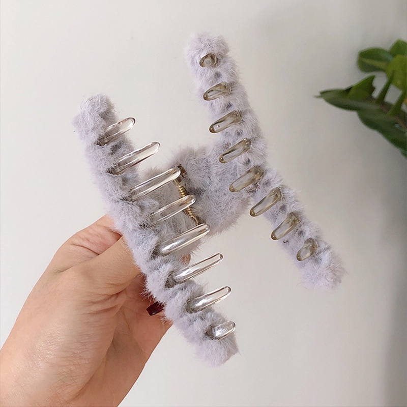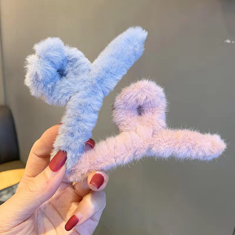 [Candy Color Faux Fur Hair Clips Clamps][Plush Hair Claws Furry Shark Clip][French Back Head Hair Catch Barrette][Women Hair Crabs Clip Hair Accessories]