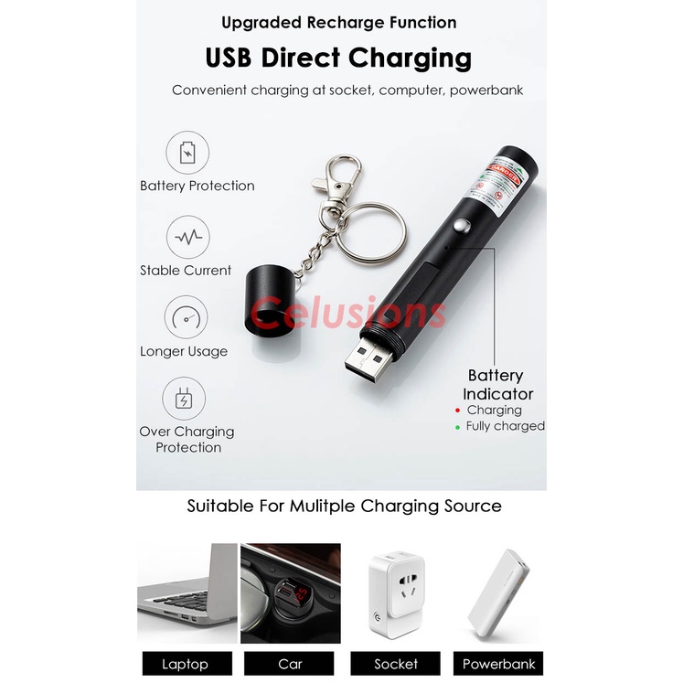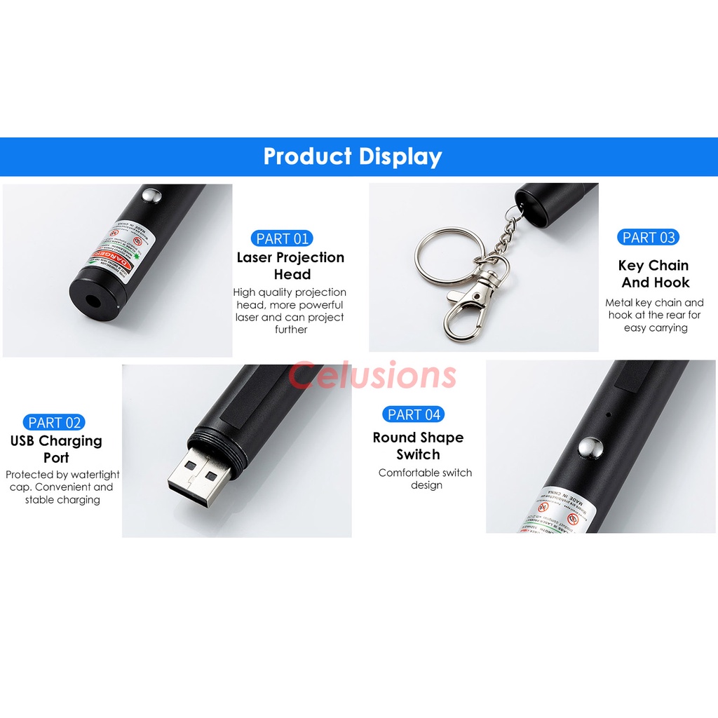 ⭐USB Rechargeable Laser Pointer⭐ Presentation Powerful Small Mini Pocket Green LED Light