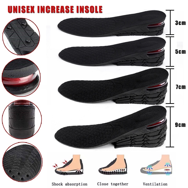 9cm Height Increase Insole with Air Cushion Unisex Increase Insole 1-4 Layer 9cm Height Lift Adjustable Cut Shoe Heel Insert Taller Support Absorbant Foot