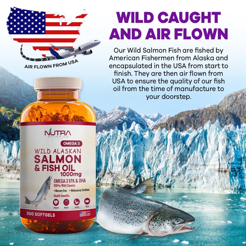 To maintain the freshness of our Omega 3 Fish Oil, each and every batch of Nutra Botanics Wild Alaska Omega 3 Salmon Fish Oil is air flown directly from USA.