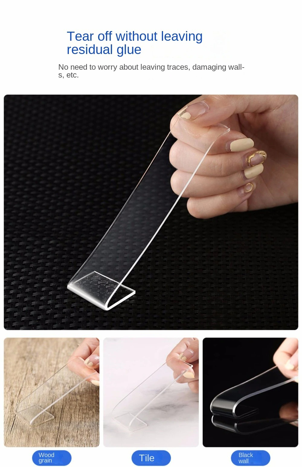 HIGH QUALITY: Our transparent double-sided tape is unique Nano materials , with durable, double-sided self adhesive, The heavy-duty tape is suitable for almost any smooth, clean and non-porous surface and stay there, to be the most stable, durable in use and functional tool for sticking items to items.