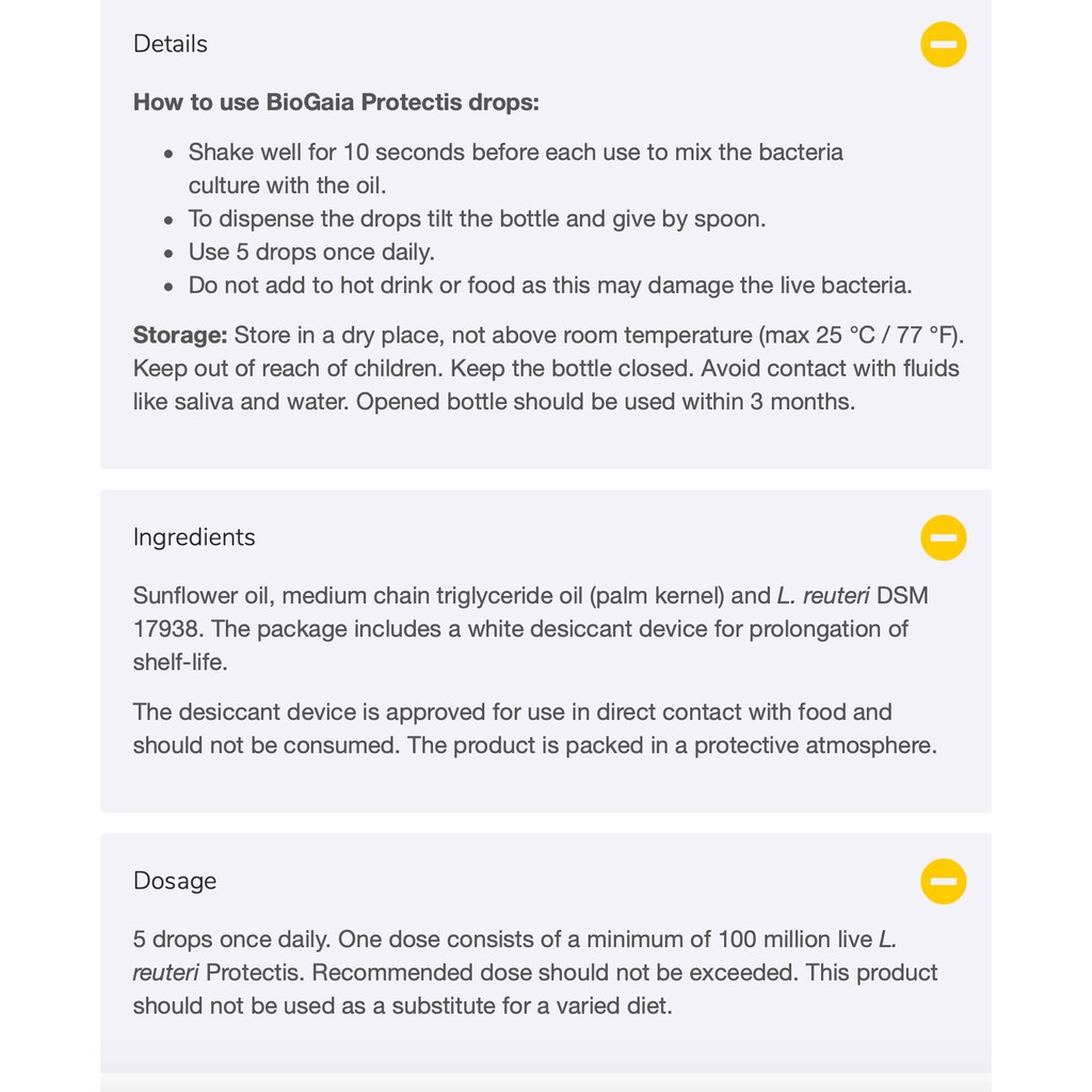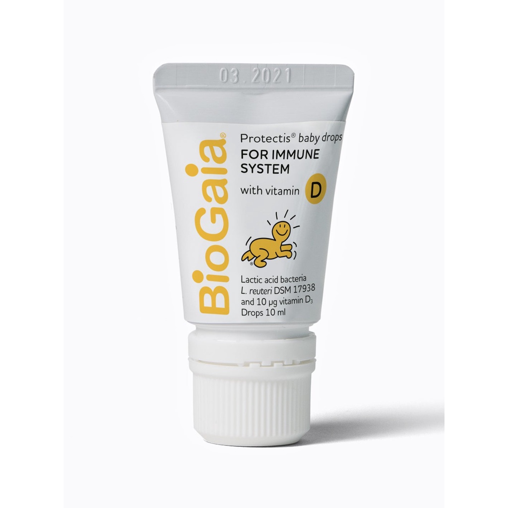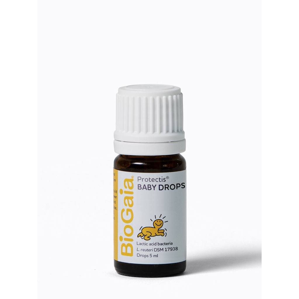 BioGaia Protectis Baby Probiotics Drops is a food supplement for babies containing the patented lactic acid bacterium Lactobacillus reuteri Protectis (L. reuteri DSM 17938) that helps the good microorganisms restore a natural balance in the gut. Because L. reuteri Protectis naturally colonizes humans it has a strong adaptation to persist and interact with humans.