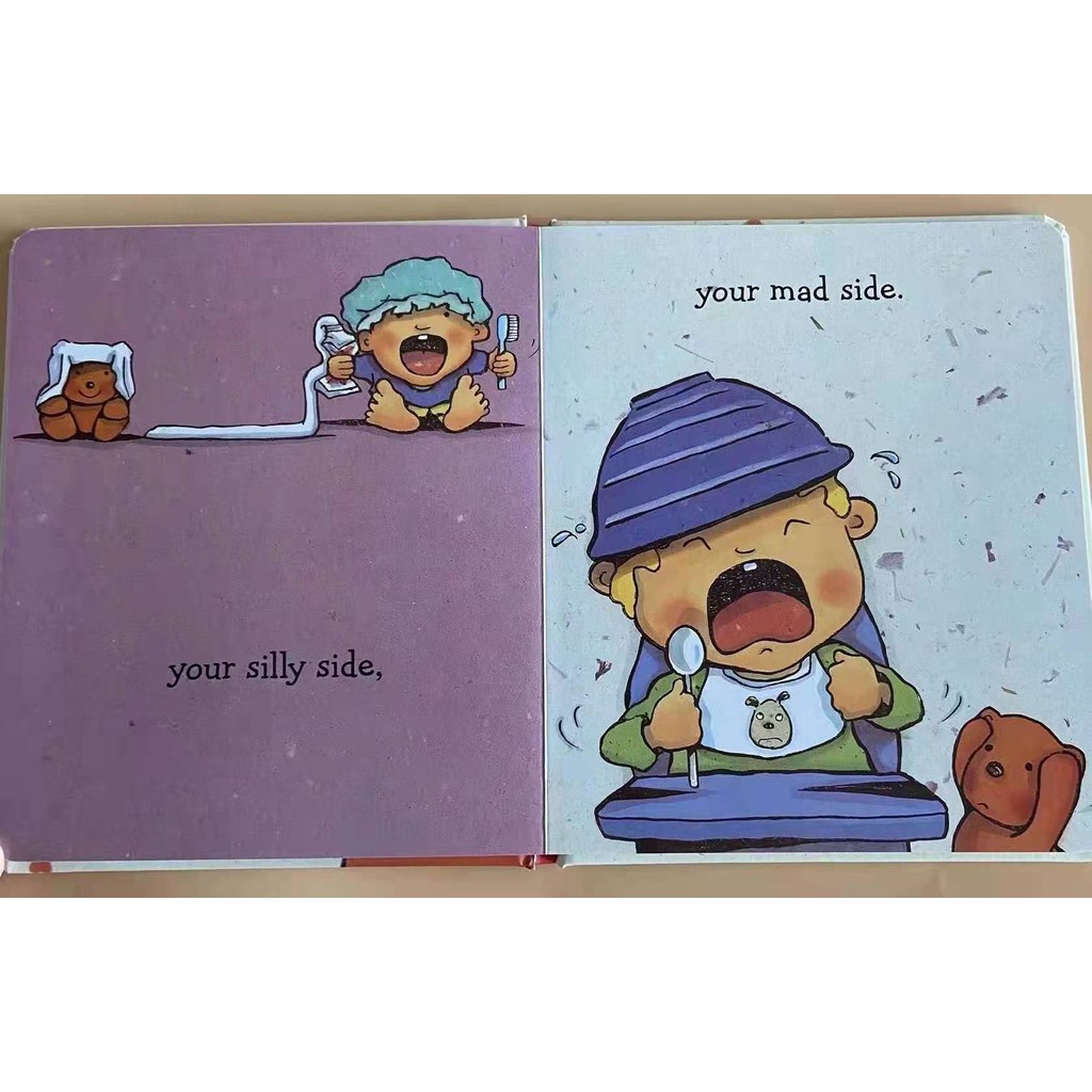 A toddler and his teddy bear illustrate a young child's happy side, sad side, silly side, mad side, and more! Babies and toddlers will feel loved all over when they hear this declaration of adoration and affection!