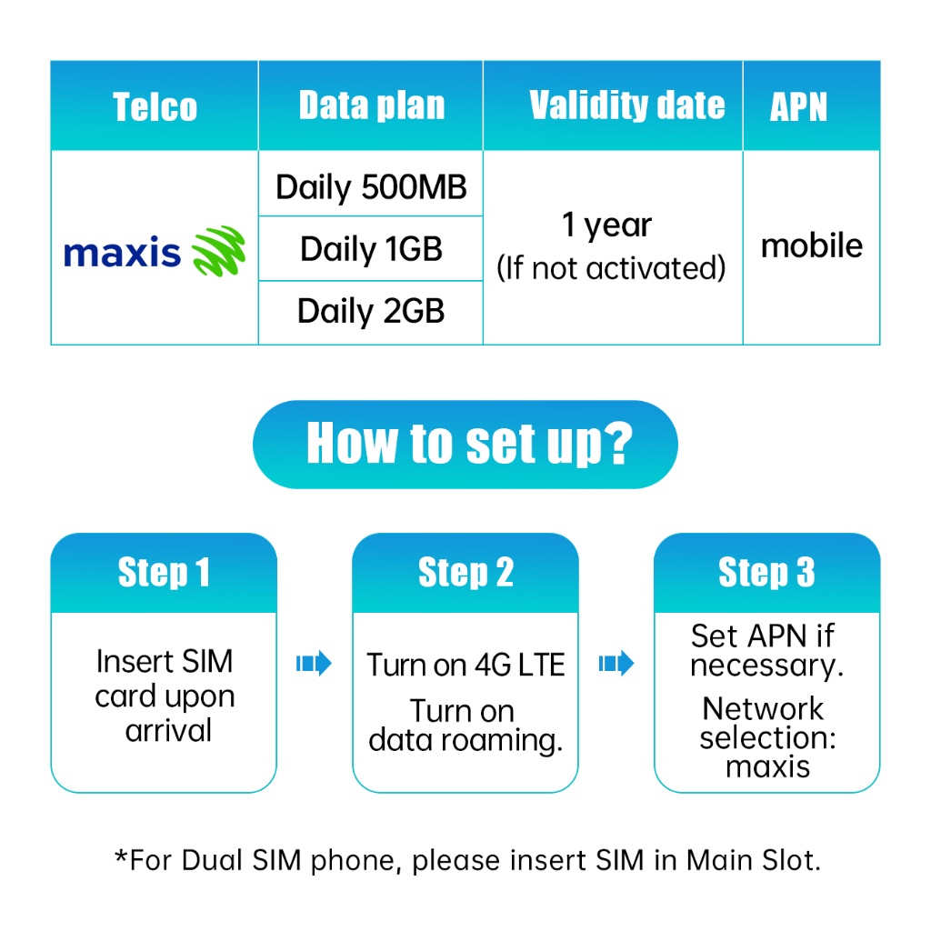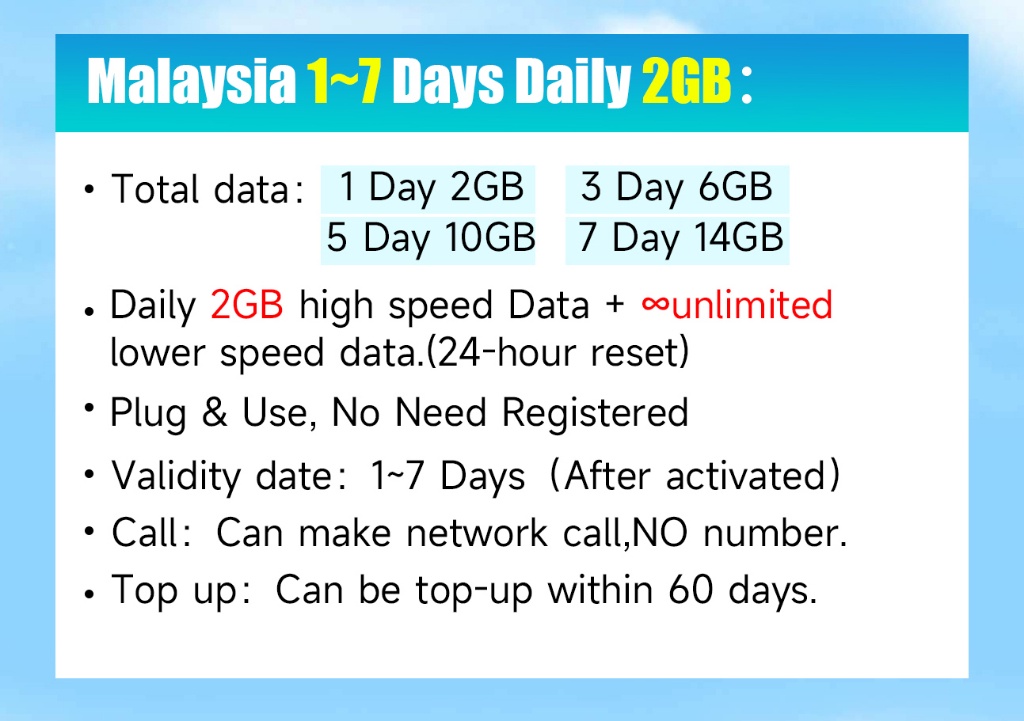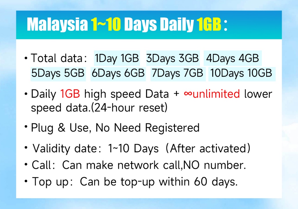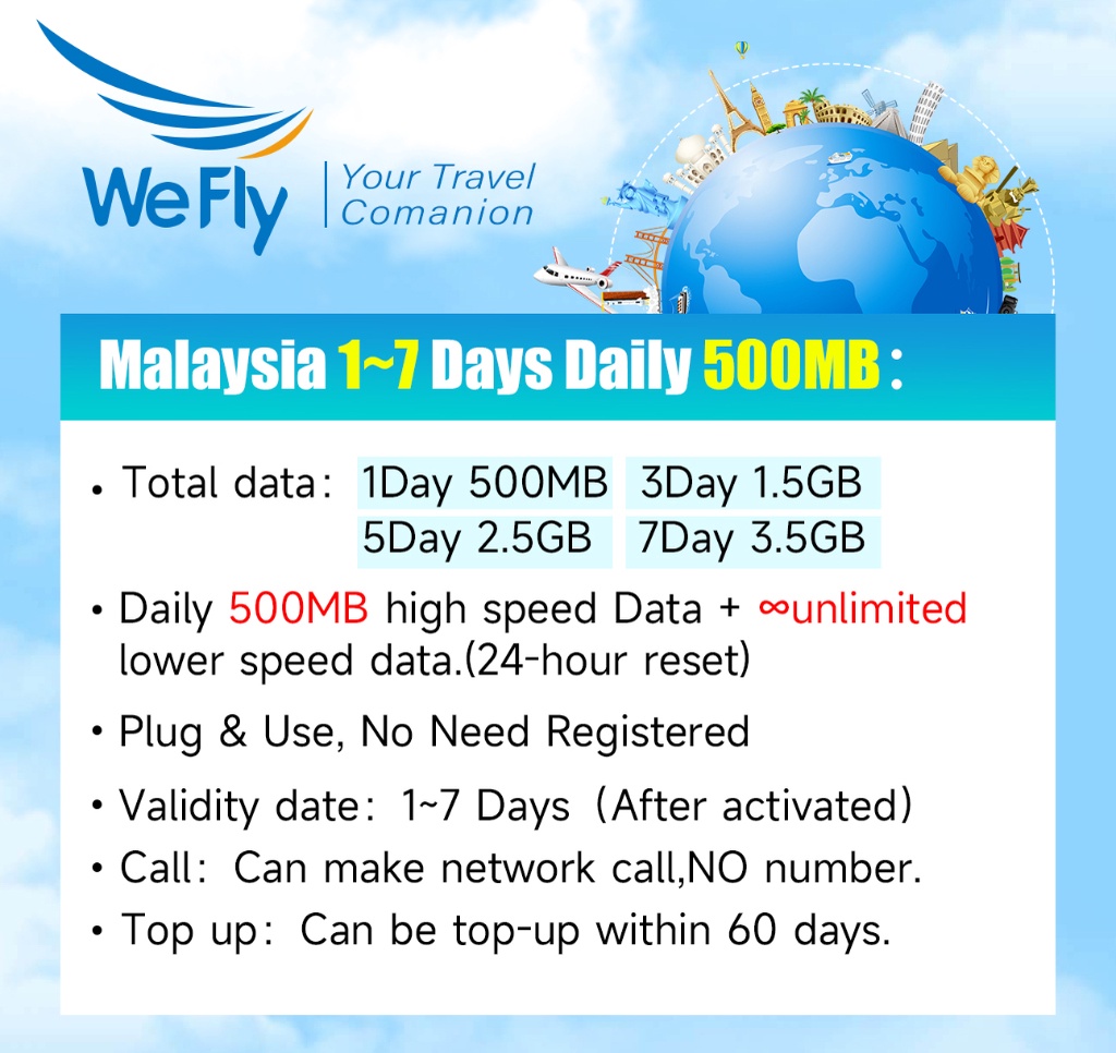Wefly Malaysia SIM Card 4G LTE High speed Data Unlimited Data 1-10 days Support eSIM Maxis