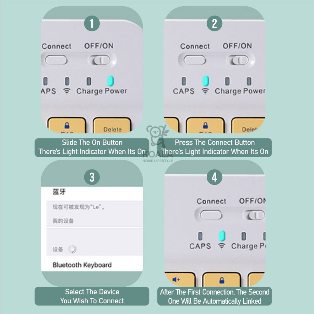 ??5.25? Koala Home Wireless Bluetooth mute Keyboard Mouse Set Set Rechargeable Compatible with Phone/Tablet/iPad