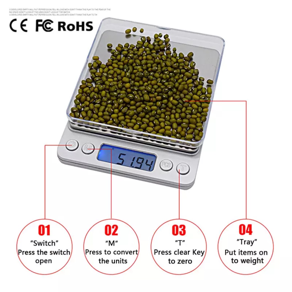 This is a high quality digital scale suitable for measurements up to 3KG. Comes with Tare function, so you can zero out the scale with your container on the scale and read only the weight of the flour or eggs or butter that you need to measure.