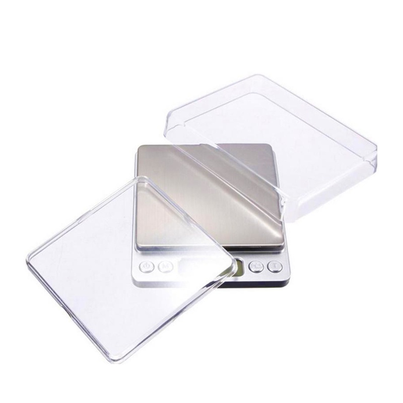 Two clear plastic square trays are included for measuring small quantity of item, but you can also use your own bowls.