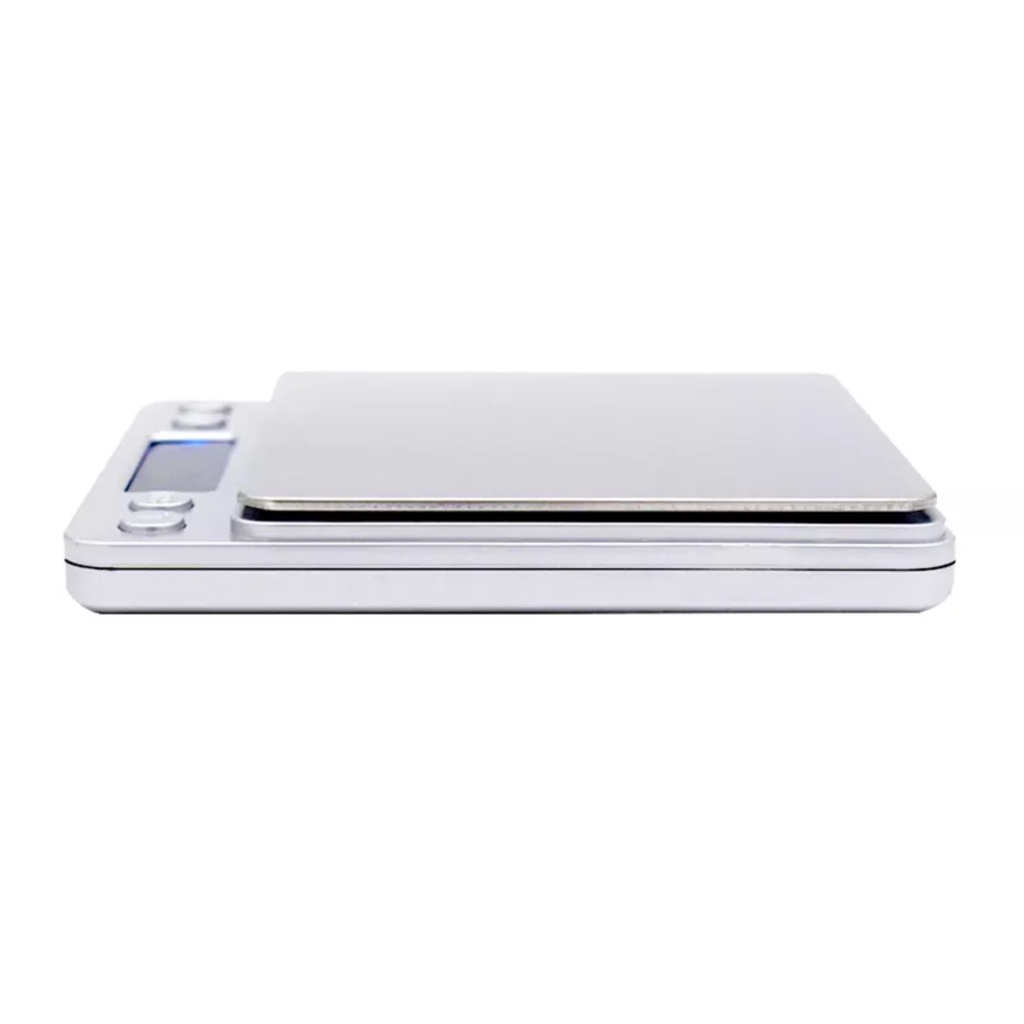 Dimensions of the stainless steel metal plate where you place items to be weighed is 10 x 10 cm.