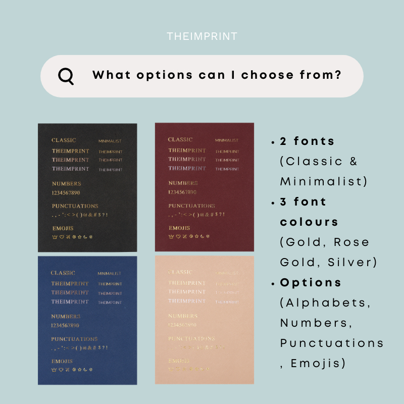 - Minimalist Font (4.5mm) fits up to 10 characters* only