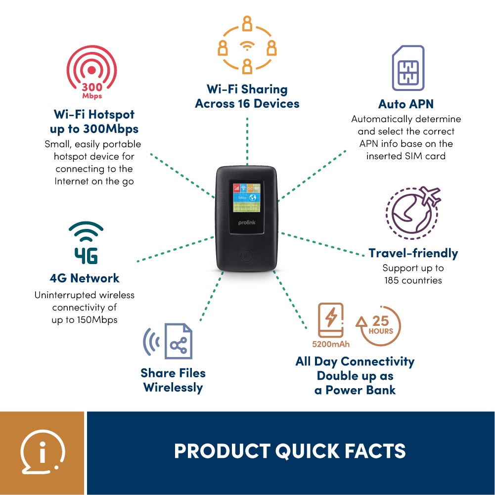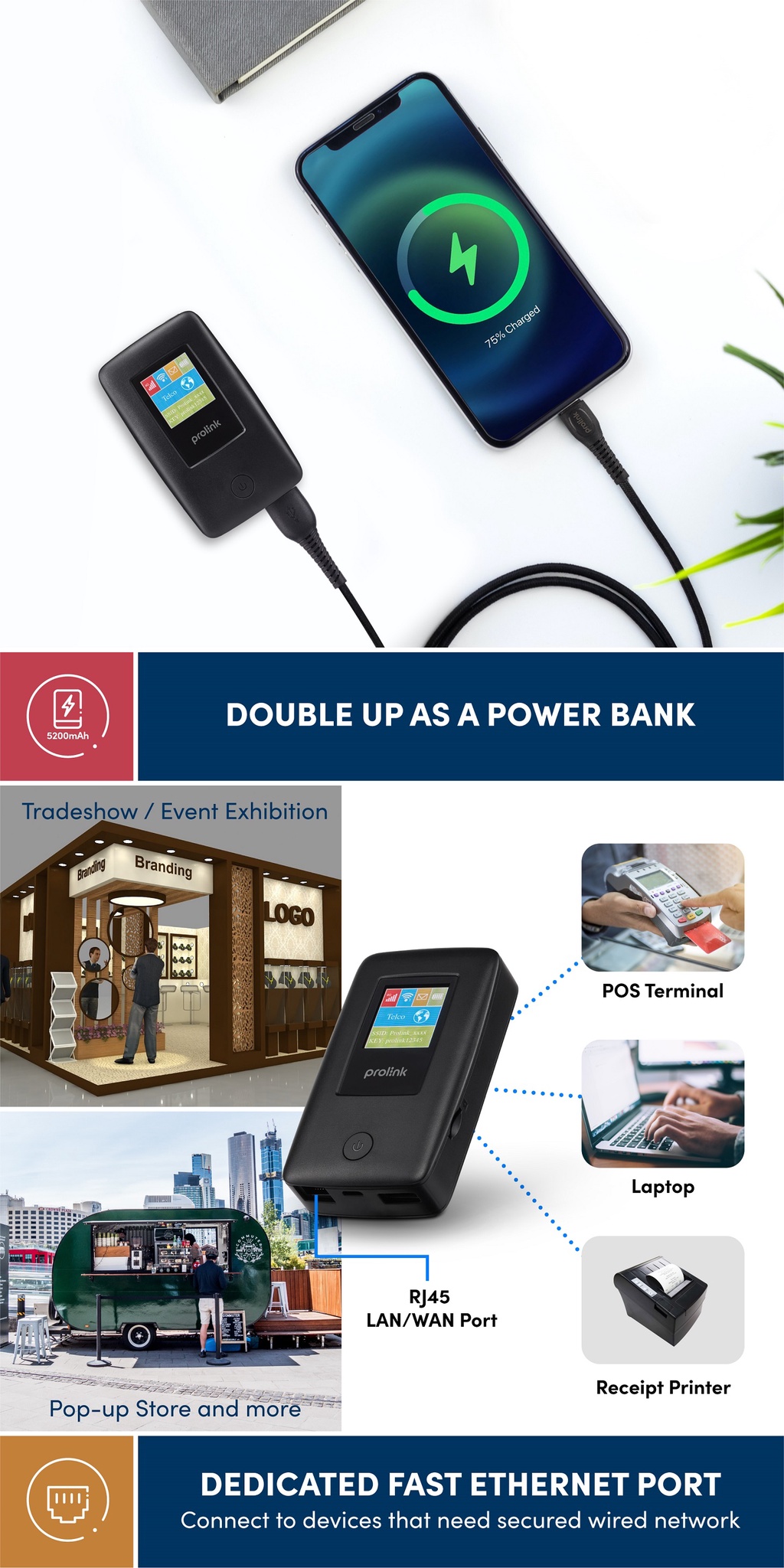 [Upto 25 hrs long] Prolink DL-7203E 4G LTE Mobile Wi-Fi w SIM slot (300Mbps WiFi Speed) Power bank/ MiFi/ 185 countries