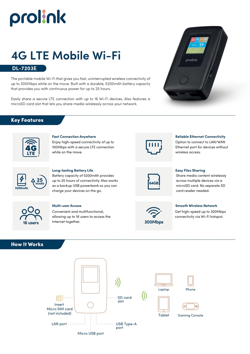 1 x Prolink DL-7203E 4G LTE mobile Wi-Fi