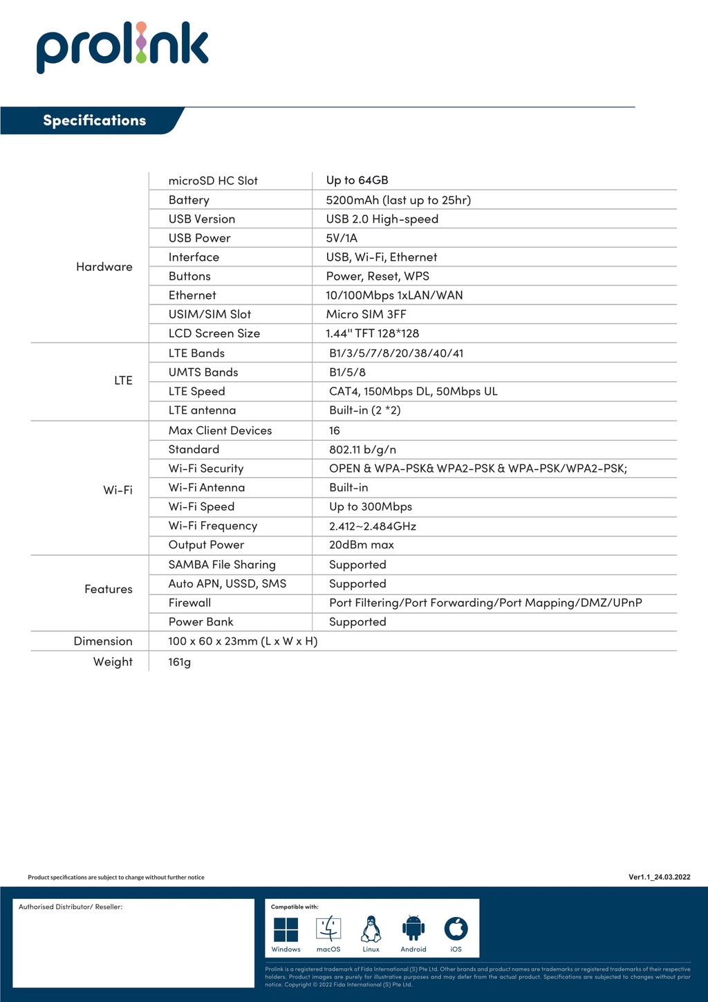 *To check Countries/Telco compatibility, refer to link: https://prolink2u.com/check4g/
