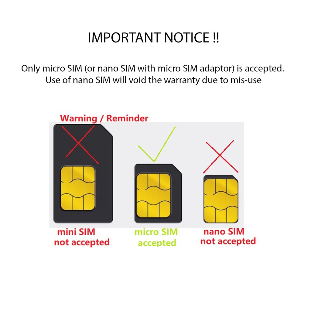 Note: Recommend NOT to use 3rd party SIM card adaptors but to use only the one that came with their SIM card. This is to prevent the SIM card from getting stuck in the slot and to prevent damage to the slot when the SIM card is taken out via force.
