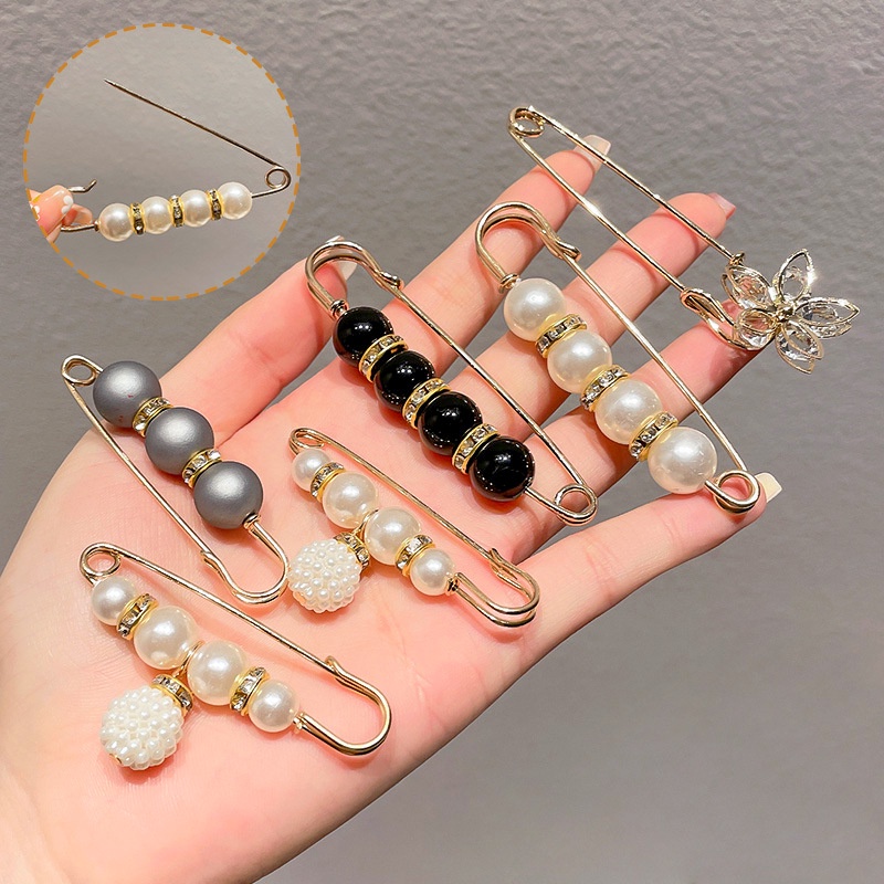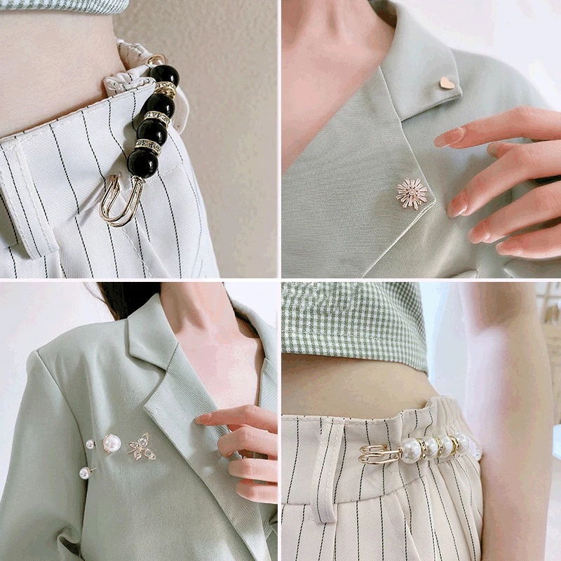 Brooch pin overalls with waist buckle, imitation pearl pin and buckle clothes to fix the waist and change the small artifact.