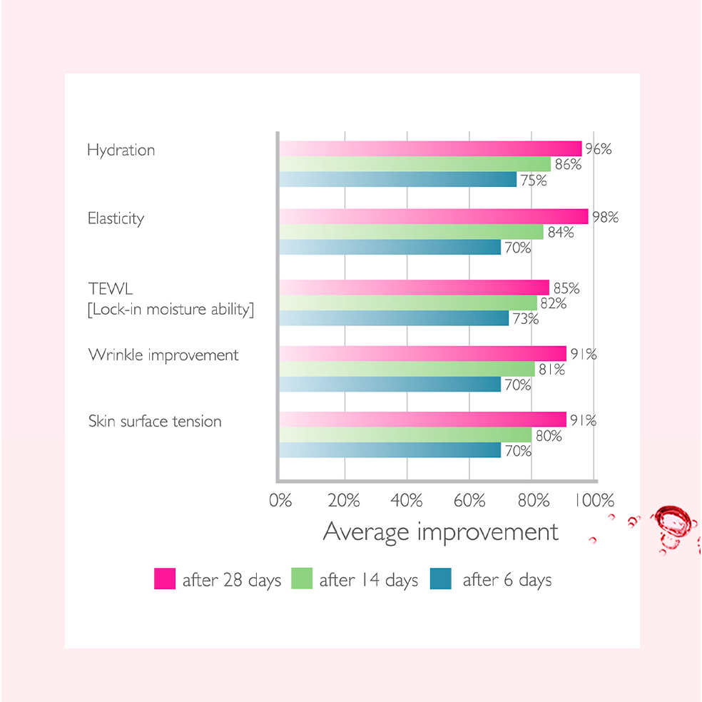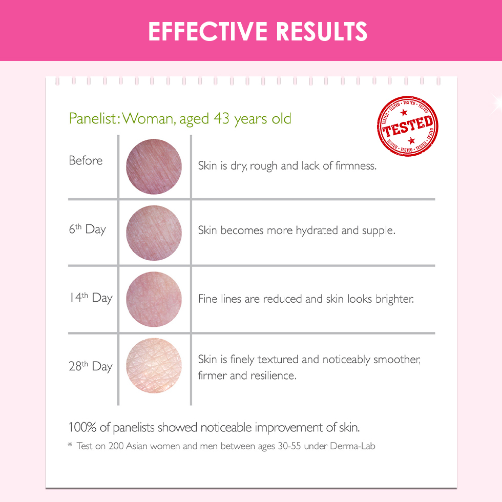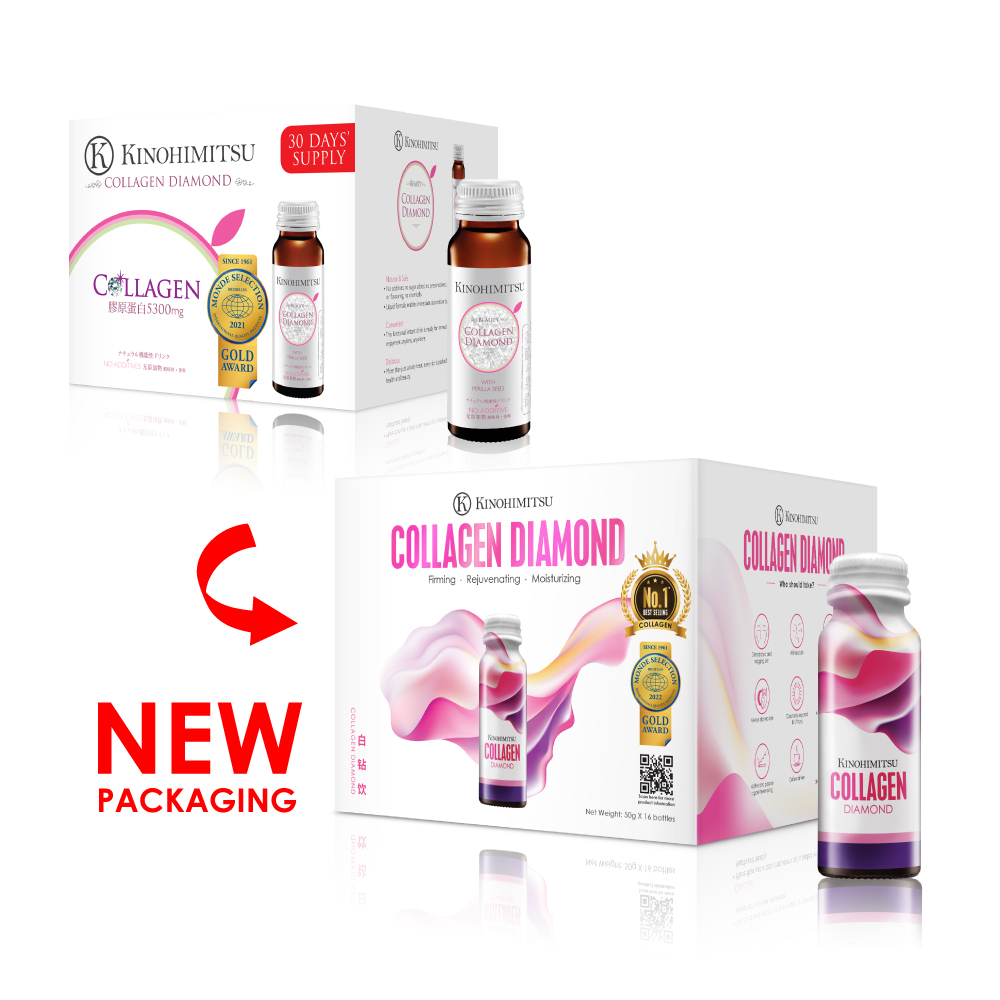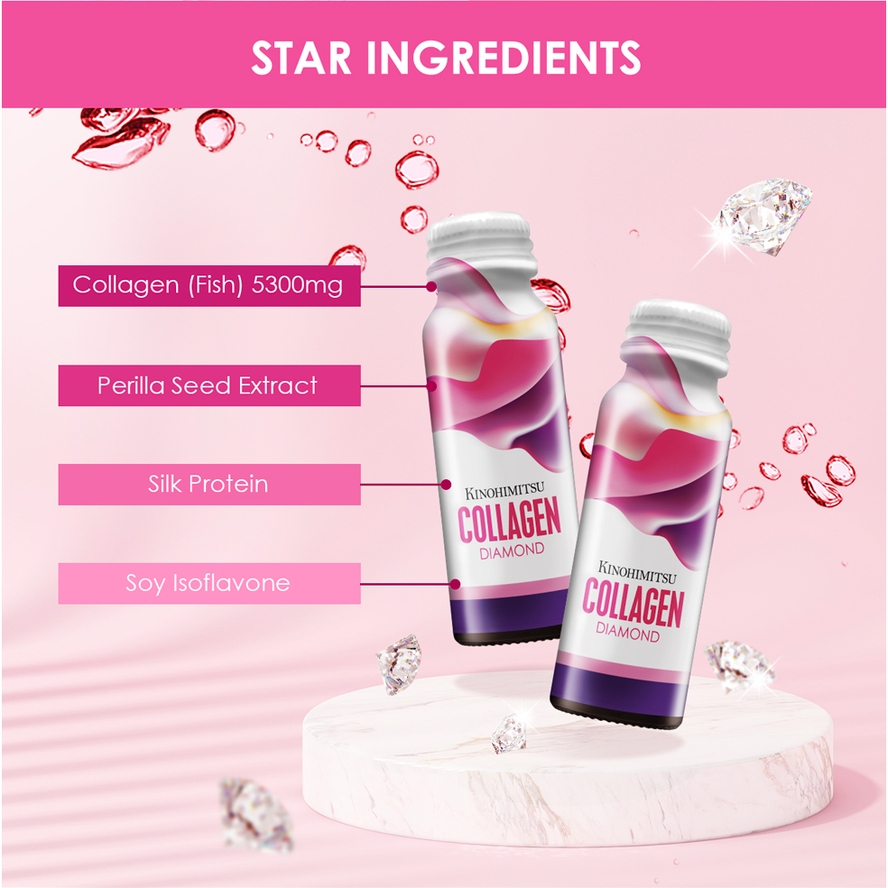 By actively boosting collagen synthesis and repairing damaged collagen fibres, Kinohimitsu Collagen Diamond 5300 Drink reduces signs of ageing such as fine lines, wrinkles and dryness.