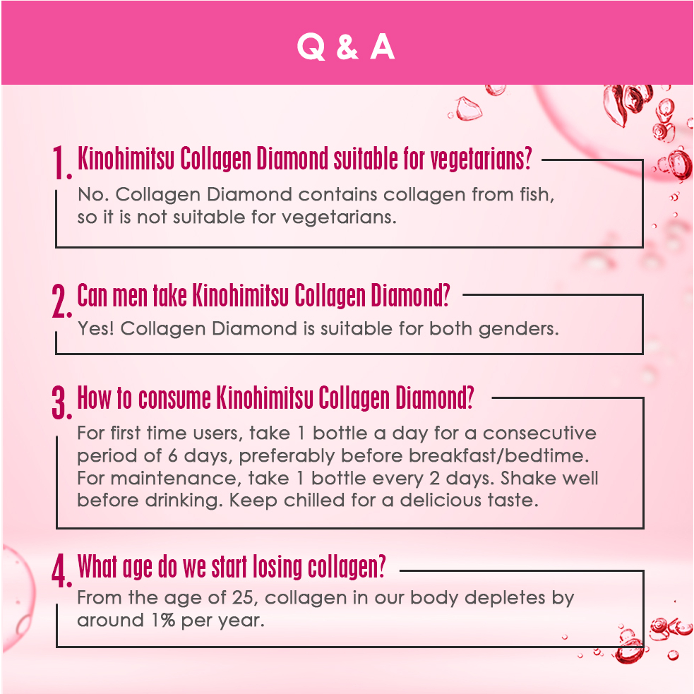 With a whopping 5300mg of Collagen Peptide, Kinohimitsu Collagen Diamond 5300 Drink is specifically catered to help restore youthfulness, resilience and radiance to mature skin.