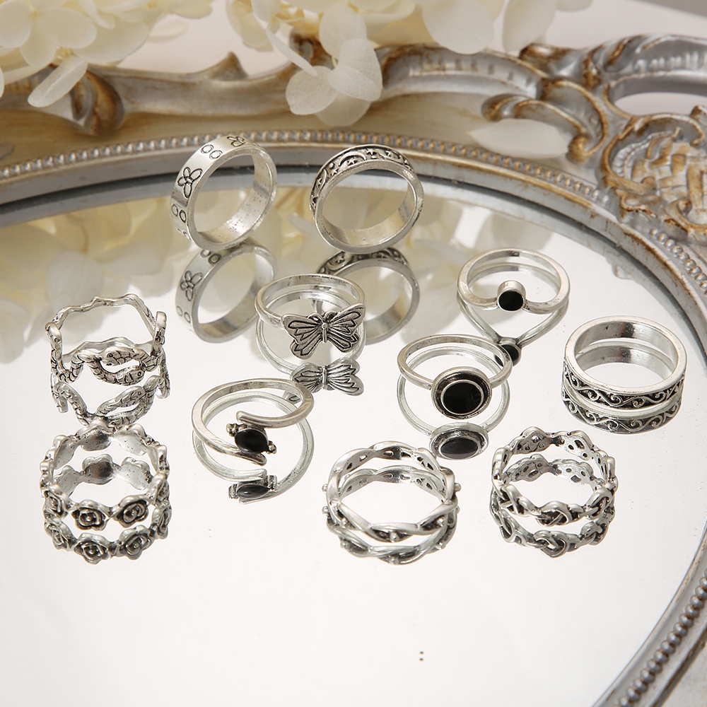 ? Name:11pcs/set Fashion Y2K Adjustable Oil Dripping Snake Bead Ring Set Resin Butterfly Twist Ring Accessories Jewelry