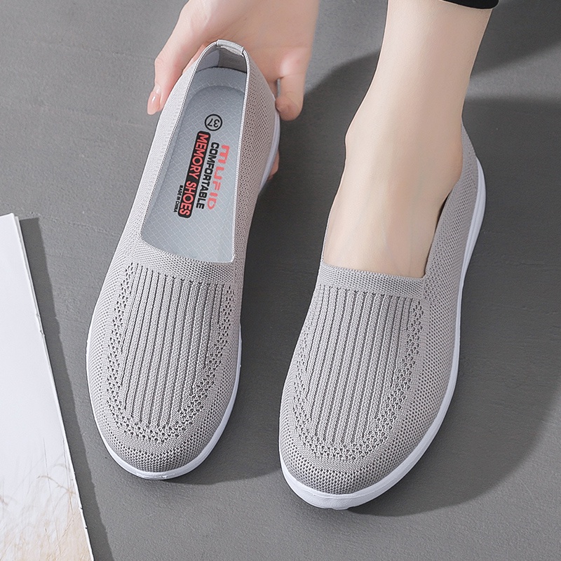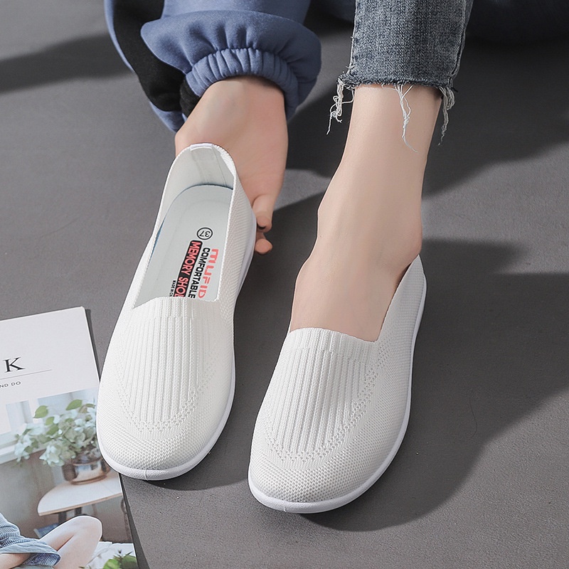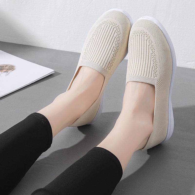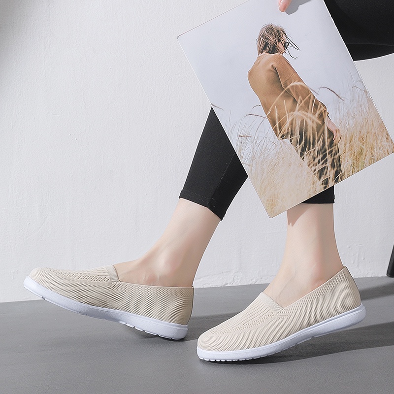 Women New Pea Shoes Non-slip Soft Bottom Flying Woven Work Shoes Flat Bottom Maternity Shoes