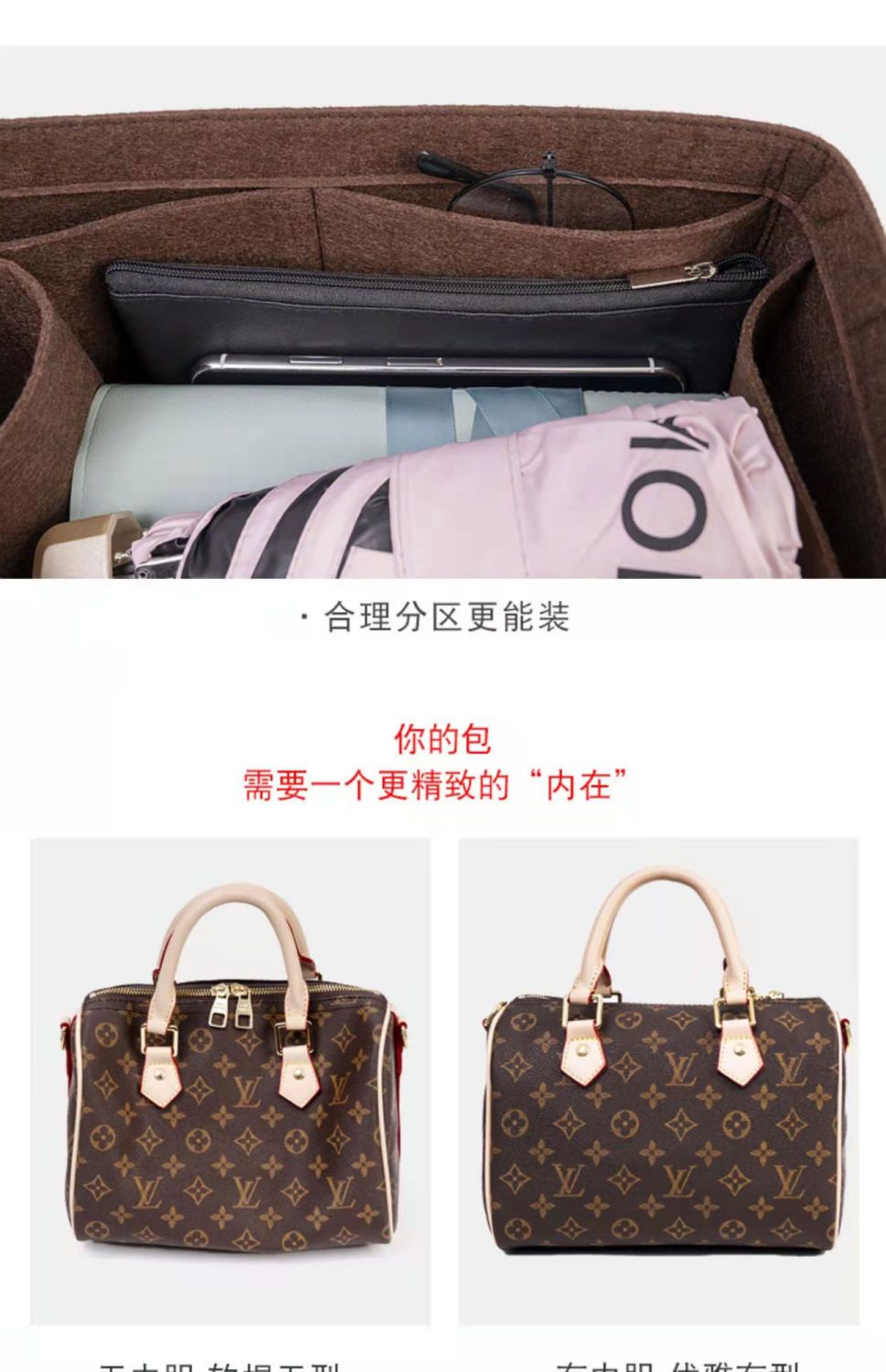 Serves for Speedy Nano16 25 30 Bag, keep your handbag look beautiful and in order, it is easy to change purses and bags throughout the day without having to rearrange.
