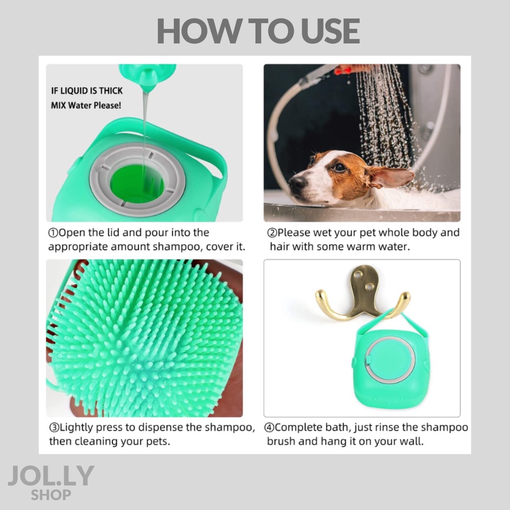 3. A bathing tool for reducing pet resistance: A soft silicone brush removes loose hair and dirt while gently applying foam to the dog without causing any discomfort.