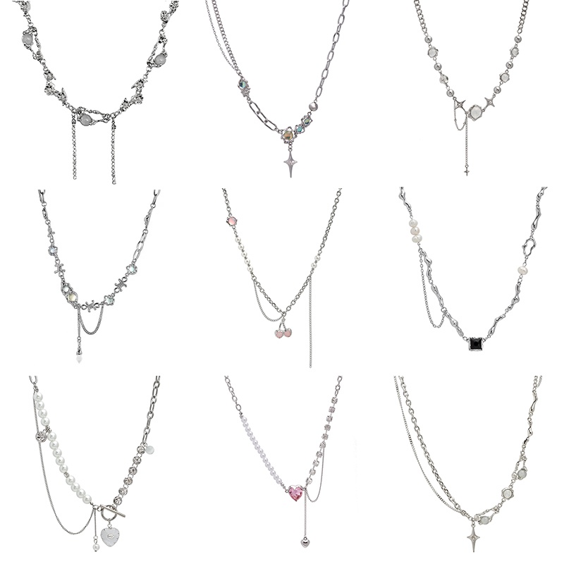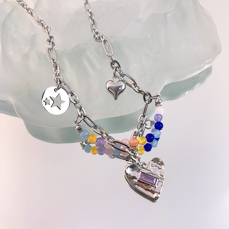 Y2k Gem Silver Necklace Beads Heart Star Aesthetic Pendant for Women Fashion Jewelry Accessoires