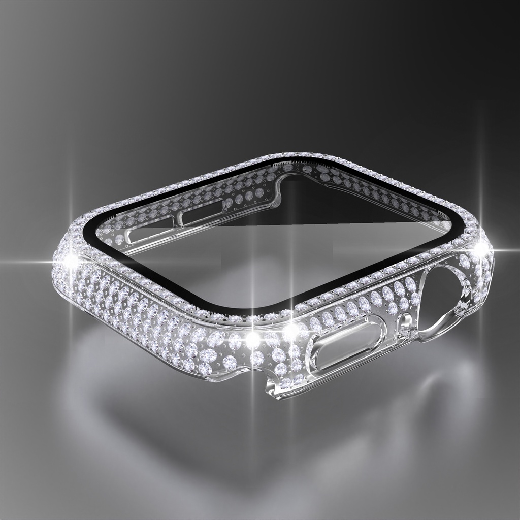Diamond Watch Case Built-in Tempered Glass for Apple Watch 41mm 45mm 38/40/42/44 for iWatch Series 7 6 SE 5 4 3 2 Cover