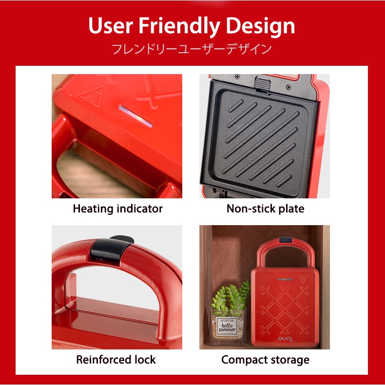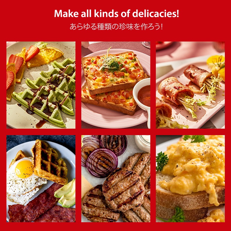 • Innovative 2 in 1 design, interchangeable plates for making sandwich and waffles