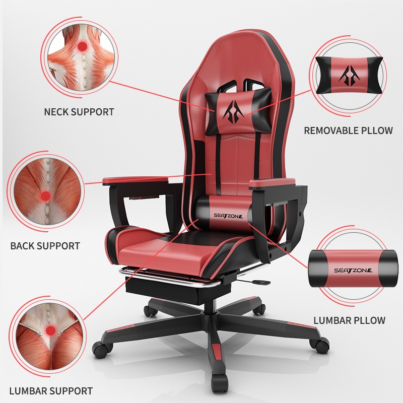 With wider and taller body and seat, SeatZone Gaming Series are able to cater to most users, providing equal amount of comfort and pleasure sitting on this masterpiece. The surface is coated with all new Carbon Fibre PU leather. It is made for you to pamper not just yourself but anyone sitting on this throne.