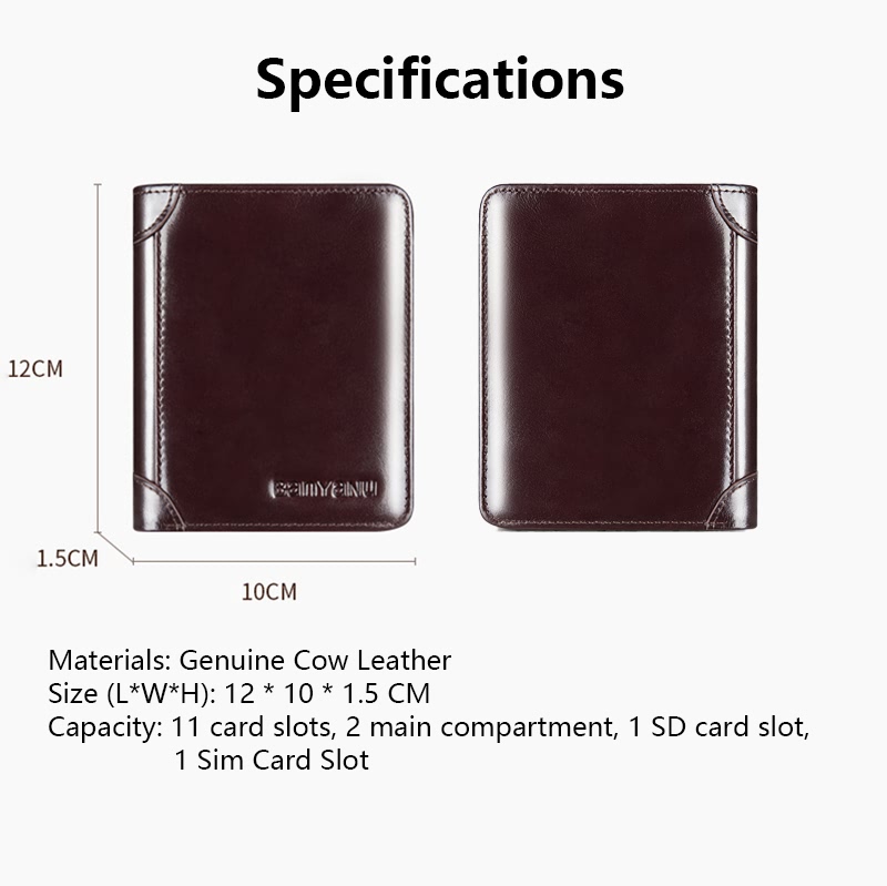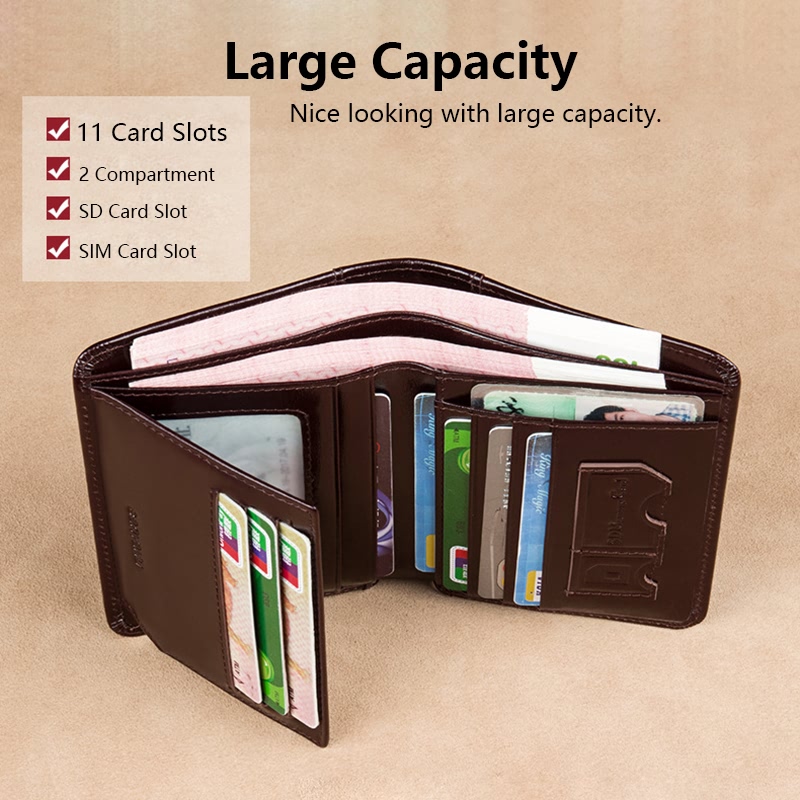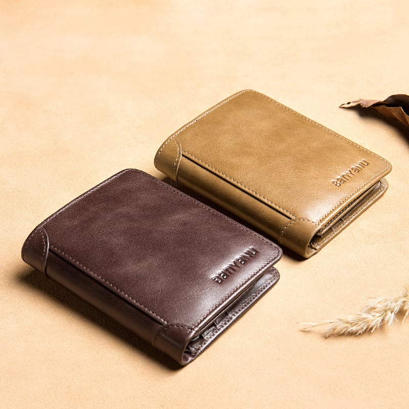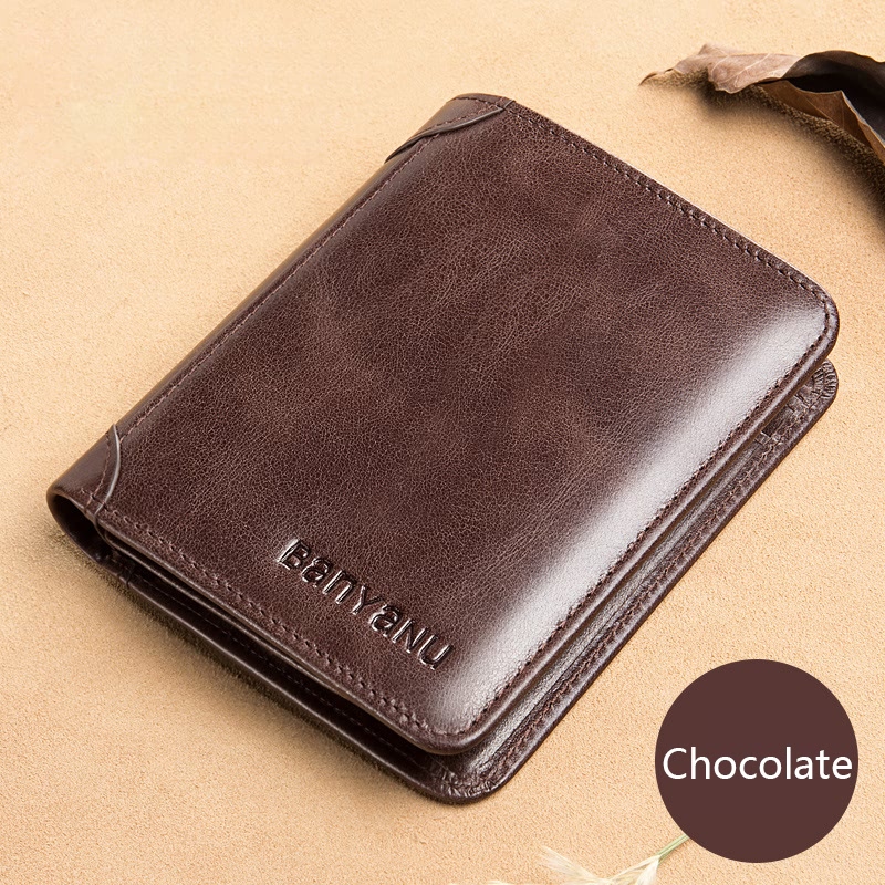 BELA Men Wallet Genuine Leather Short Vertical Trifold Wallet for Men Black Coffee Color Dompet Lelaki Anti RFID Card Holder
