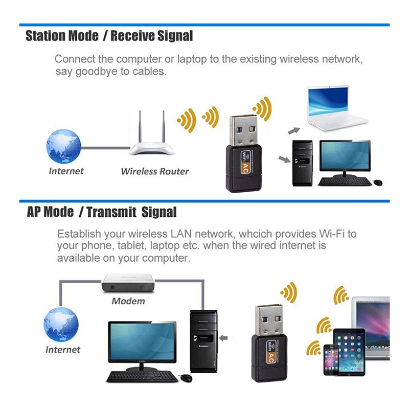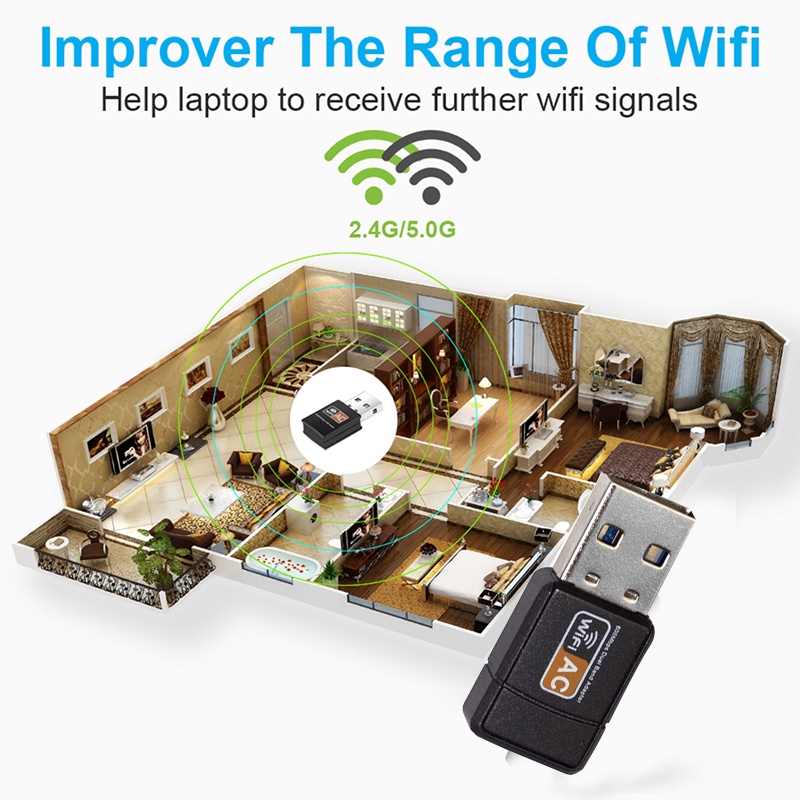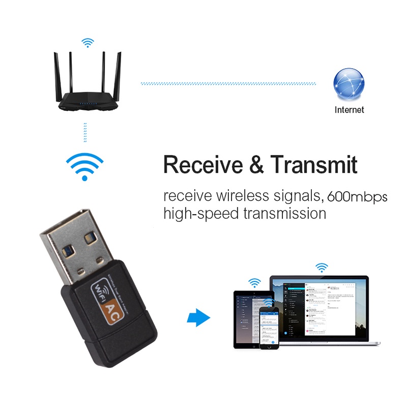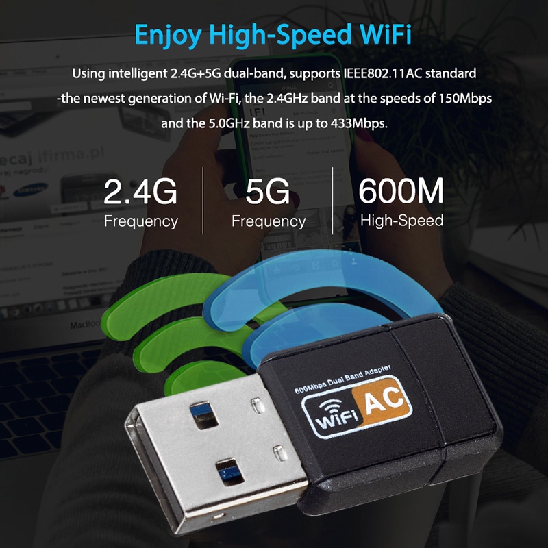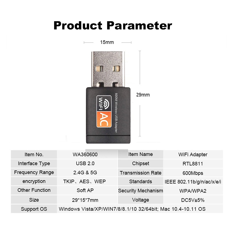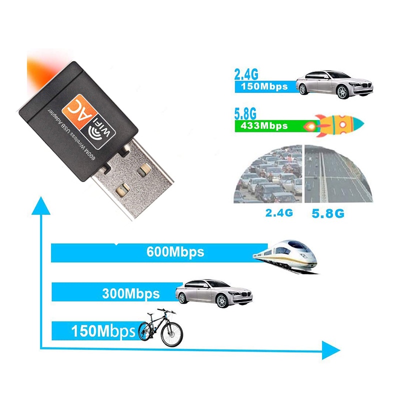 ★This WLAN wifi adapter comes with USB Type A connector, it supports USB2.0 standards interface. This adapter is designed to operate in 2.4GHz at 150mbps and 5.8GHz at 433mbps jointly providing 600 mbps at AC level.